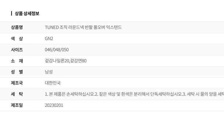 | 6. 세탁방법 및 취급시 주의사항 | 상세설명 참조 |