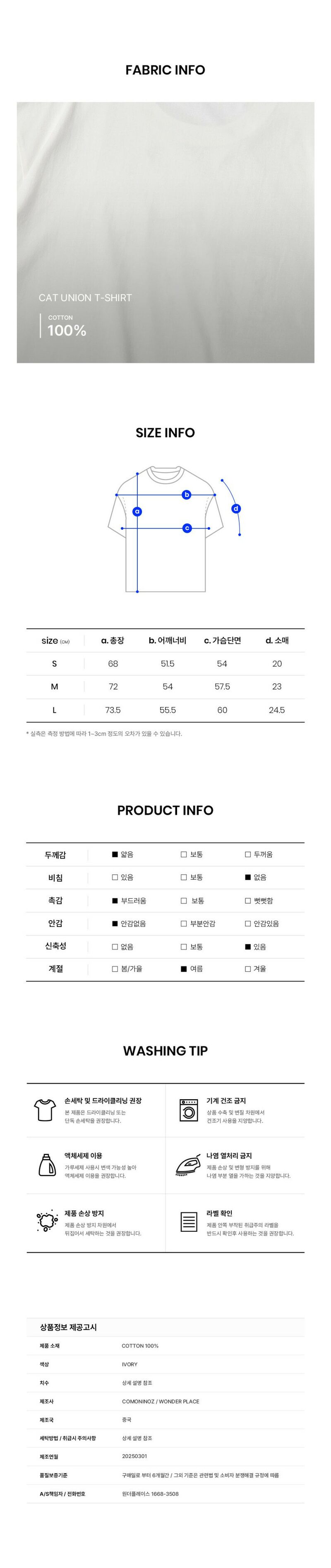 원더플레이스 꼬모니노즈 X 수북즈 CAT UNION T-SHIRT (WN246TETGZ12)
