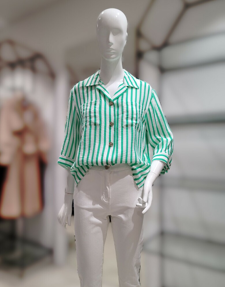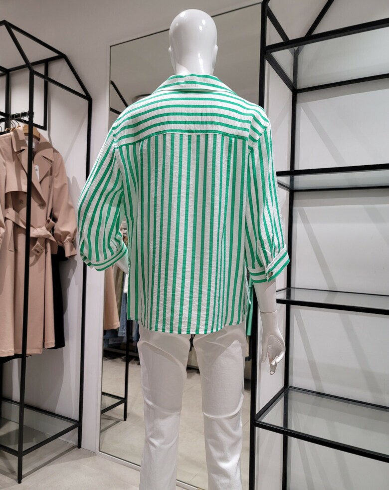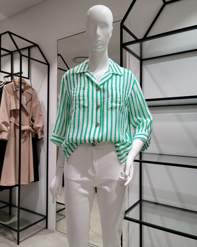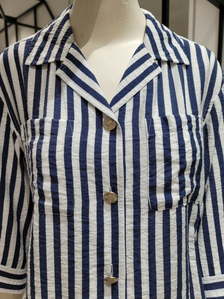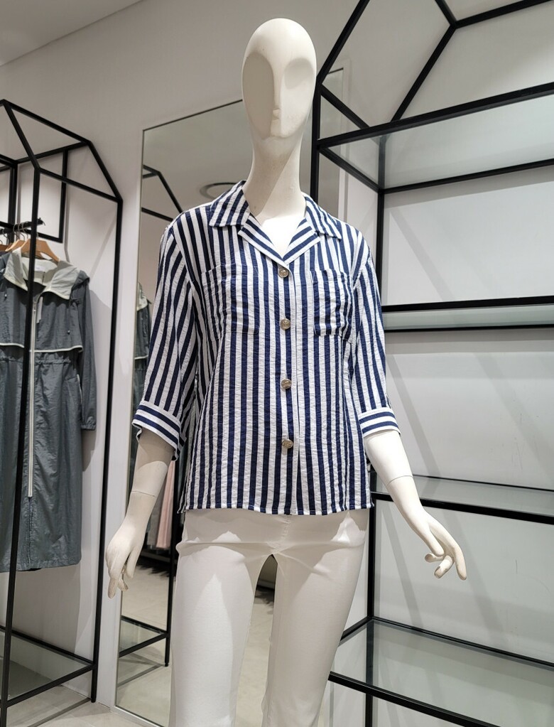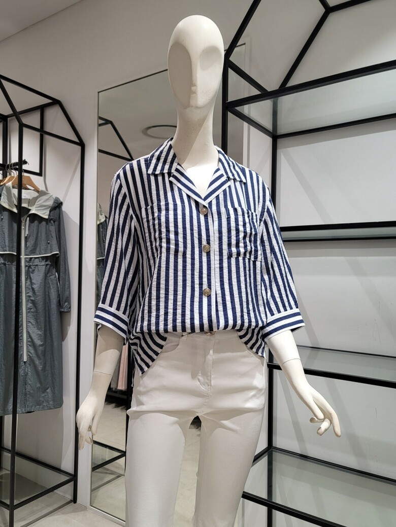 SI스트라이프 단추 포인트 블라우스SIBAE24120