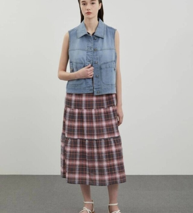 [올리비아로렌]카라 포켓 데님 베스트VVBQC4M3481