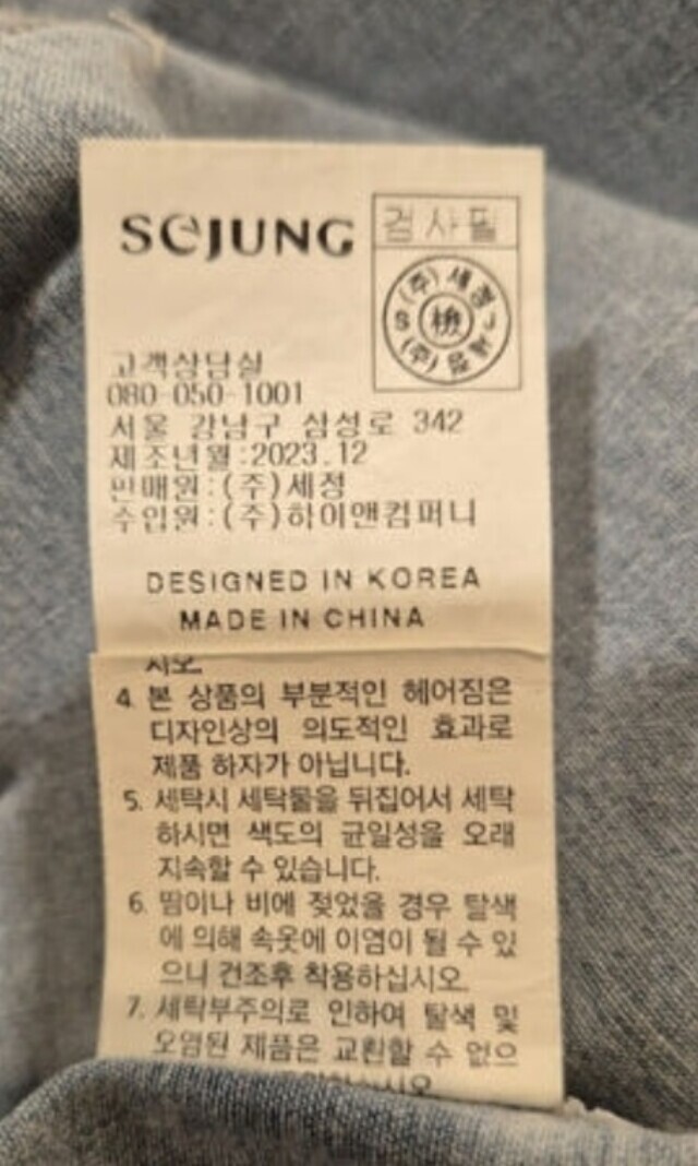 | 6. 세탁방법 및 취급시 주의사항 | 상품상세참조 |
