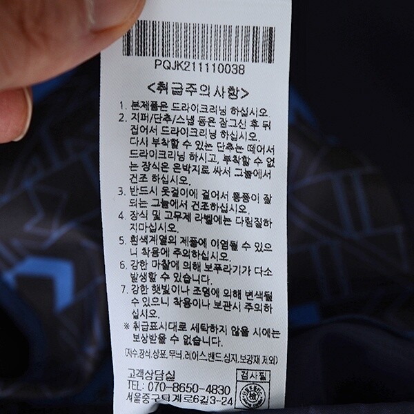 세탁방법 및 취급시 주의사항 : 본 상품 케어라벨 참조