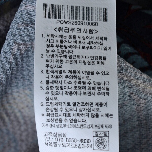 세탁방법 및 취급시 주의사항 : 본 상품 케어라벨 참조