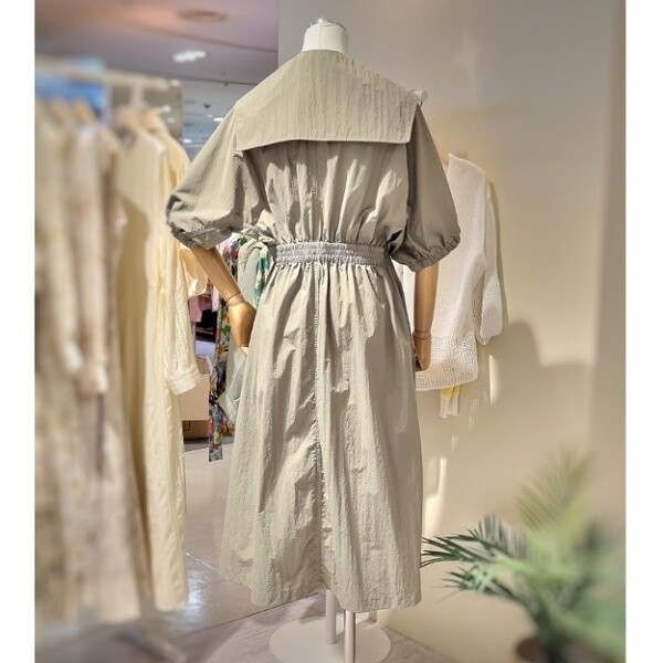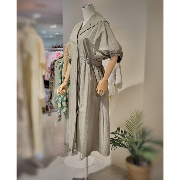 트렌치형 오픈 원피스 5부 볼륨형 소매