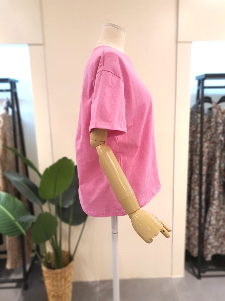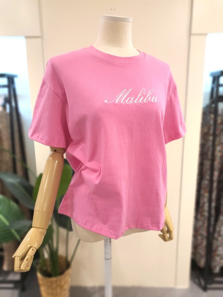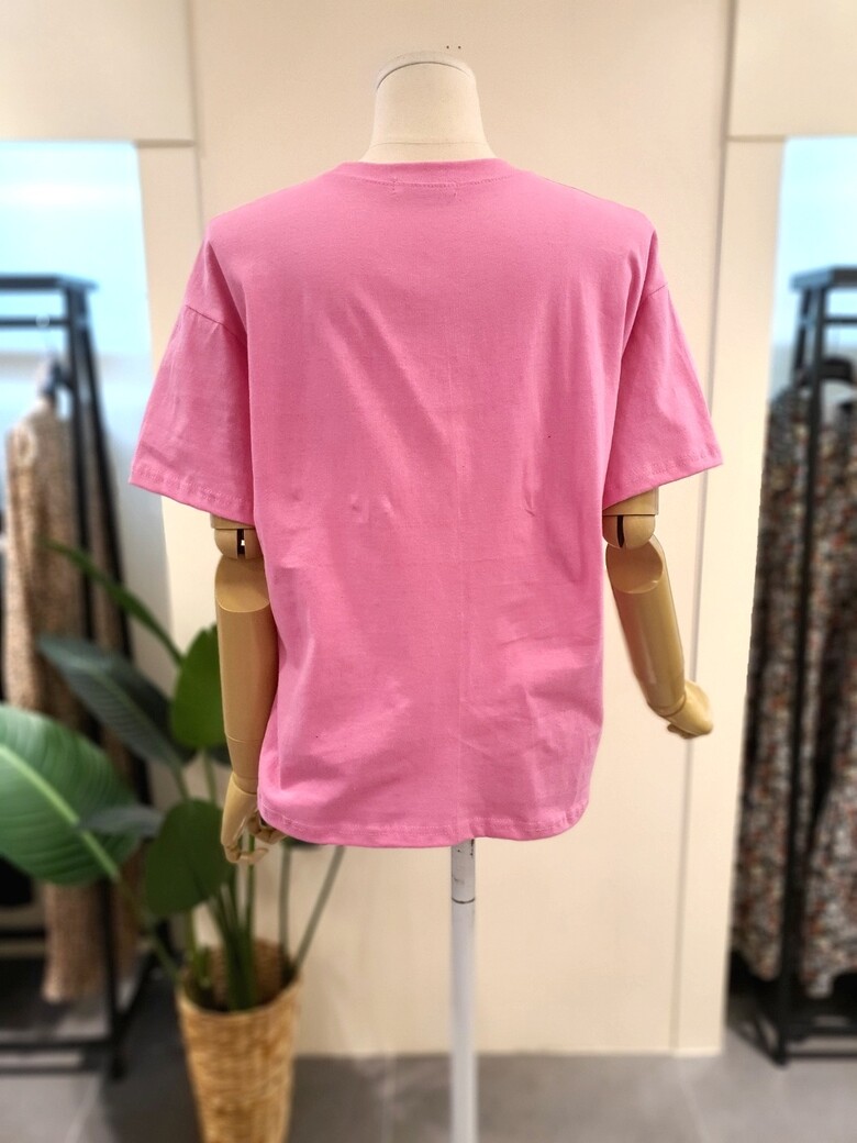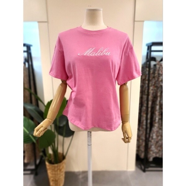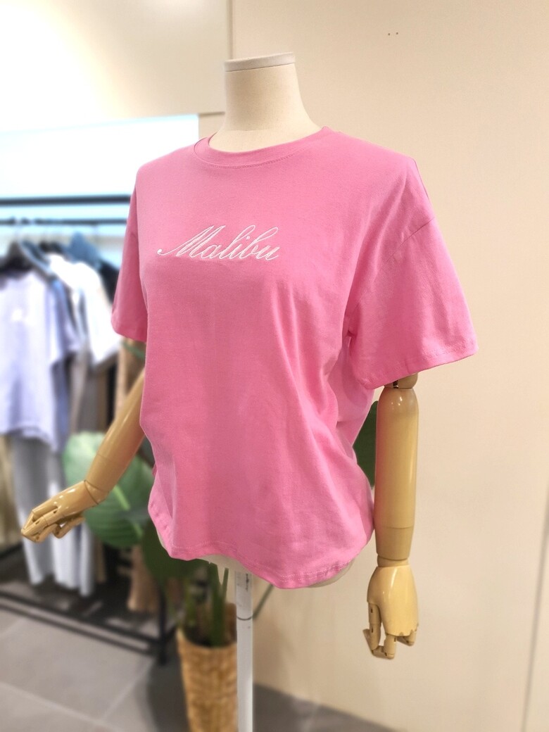 KKTSP413PK_말리부 자수 반팔 티셔츠 핑크