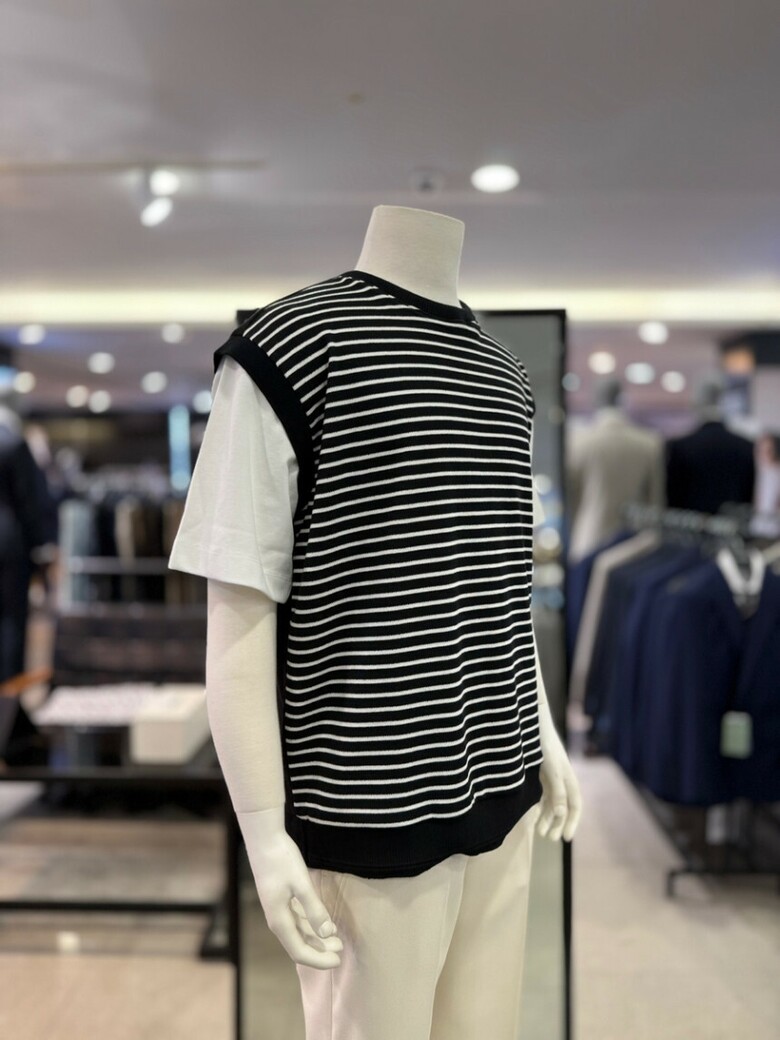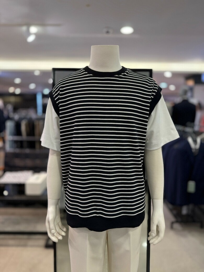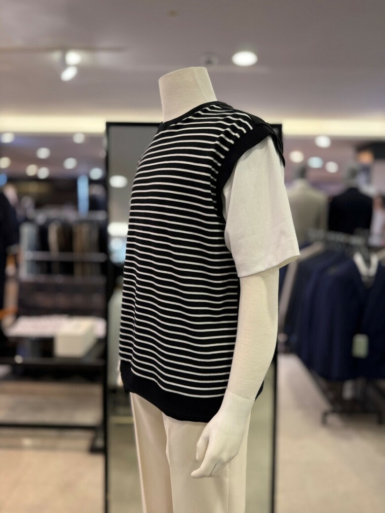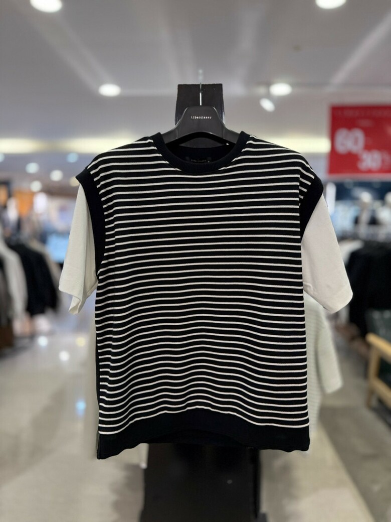 리버클래시 블랙 오버핏 스트라이프 믹스 베스트 하프 티셔츠 LLM41514