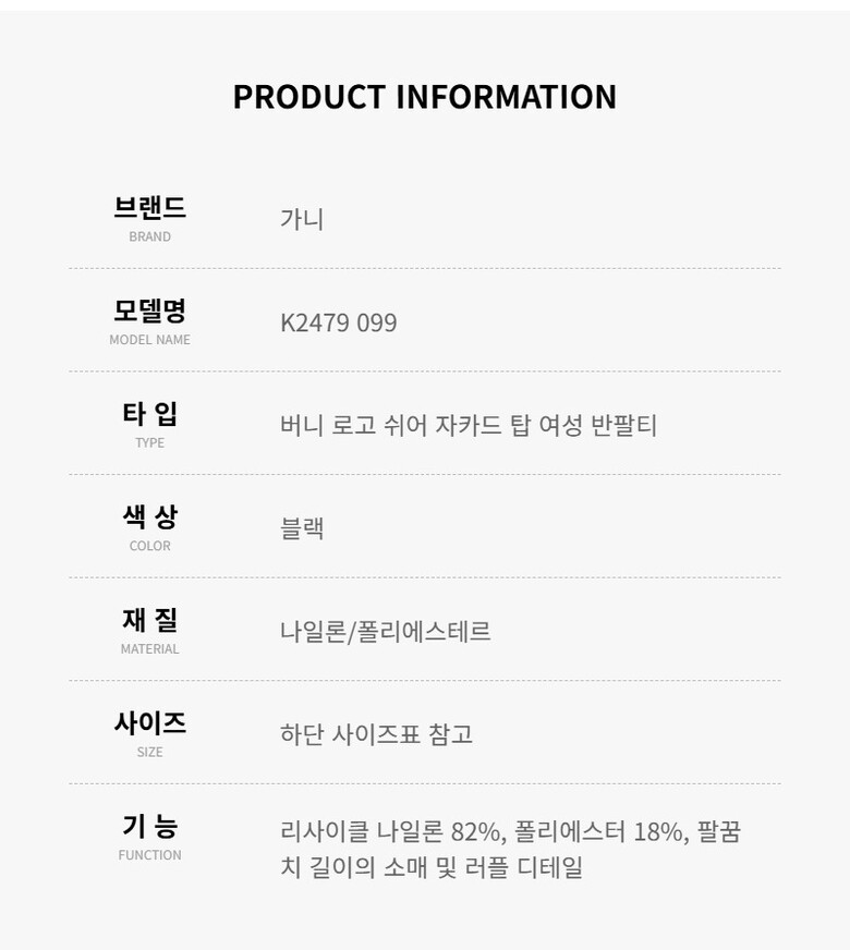 가니 반팔 K2479 099 버니 로고 쉬어 자카드 여성반팔티 당일발송
