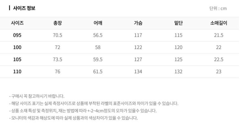 | 1. 제품 소재 (섬유의 조성 또는 혼용률을 백분율로 표시, 기능성인 경우 성적서 또는 허가서) | 상품상세참조 |