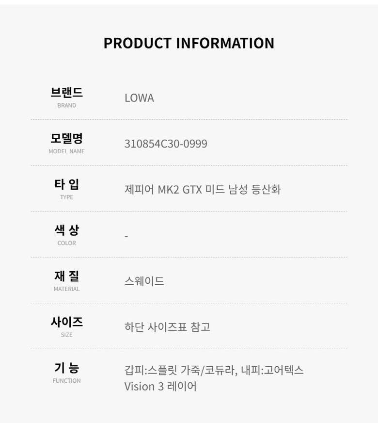 로바 310854C30-0999 제피어 MK2 GTX 미드 등산화