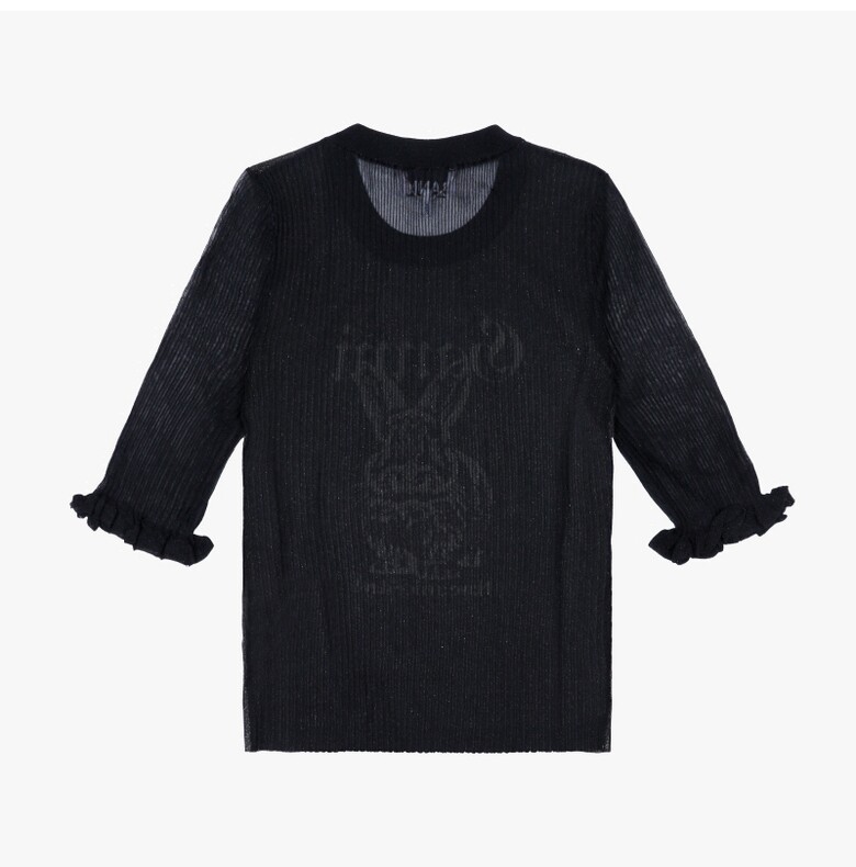 GANNI K2479 099 버니 로고 쉬어 자카드 탑 여성 반팔티