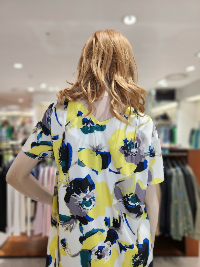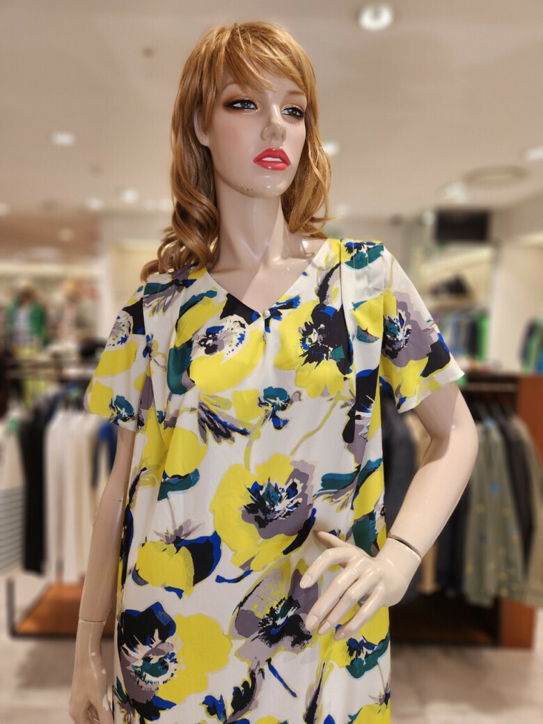 컬러풀한 프린트가 시원해보이는 루즈핏 롱 원피스입니다