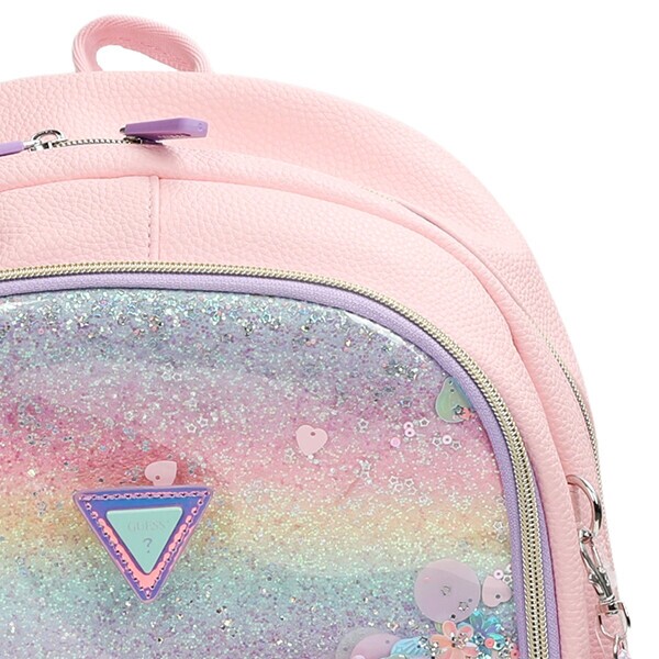 - 무지개 나염과 부드러운 연핑크컬러 베이스의 샤이니한 레쟈 배색이 멋스러운 게스 뉴라인의 책가방입니다