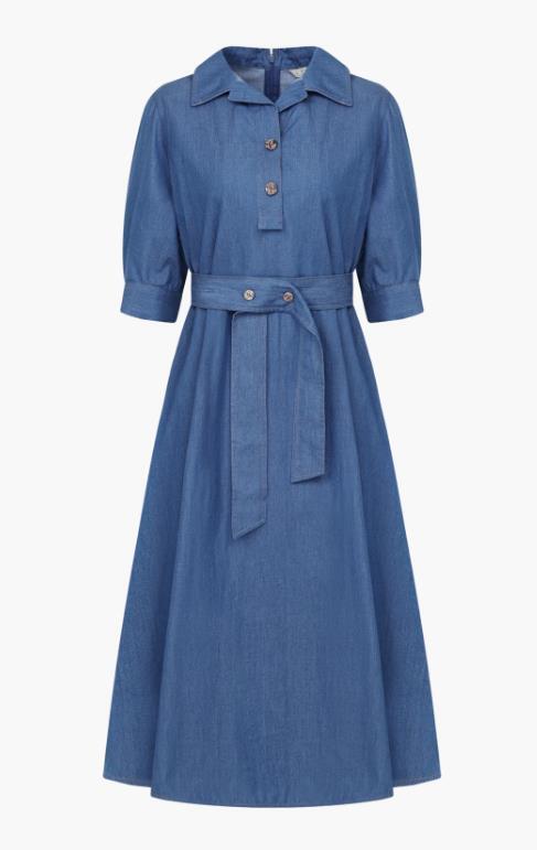핀턱 디테일의 A라인과 퍼프 소매로 페미닌한 실루엣을 연출했습니다.