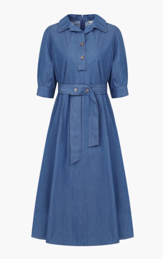 클래식한 버튼과 허리끈으로 디테일을 더했습니다.