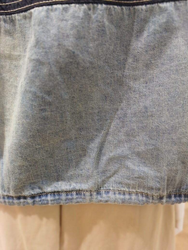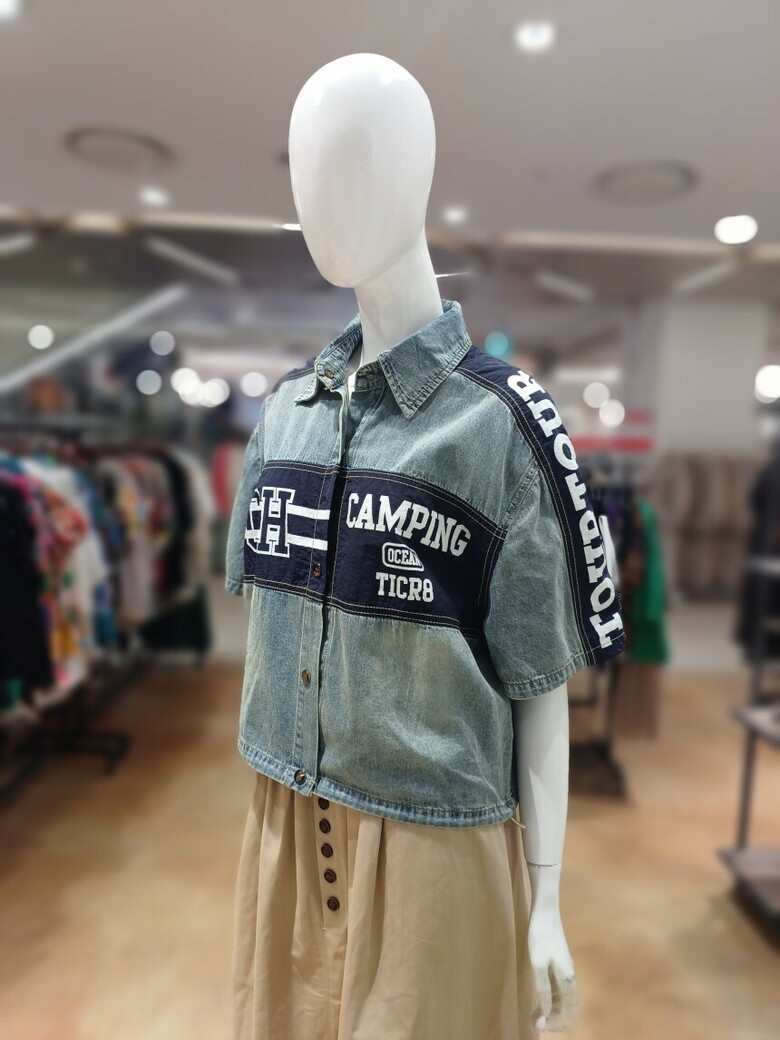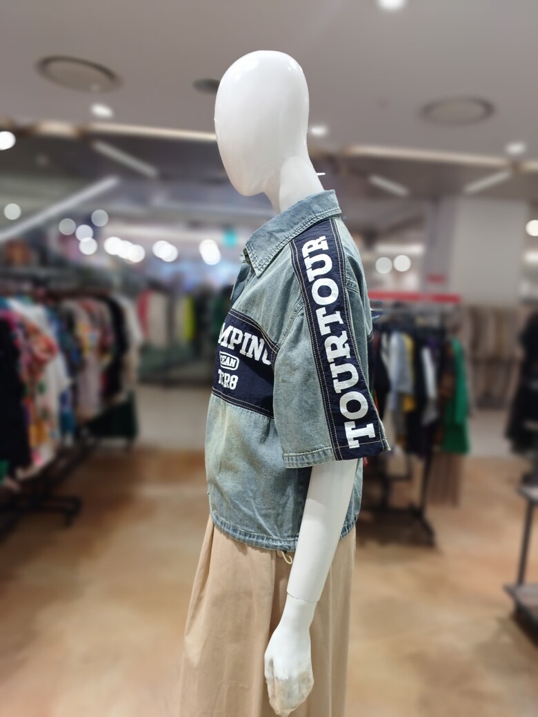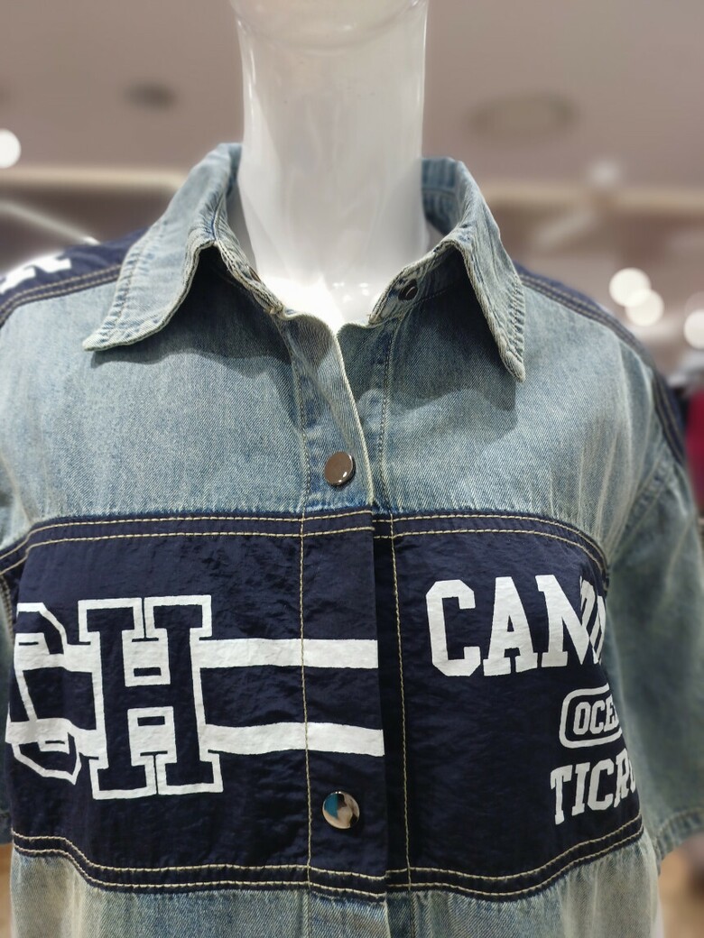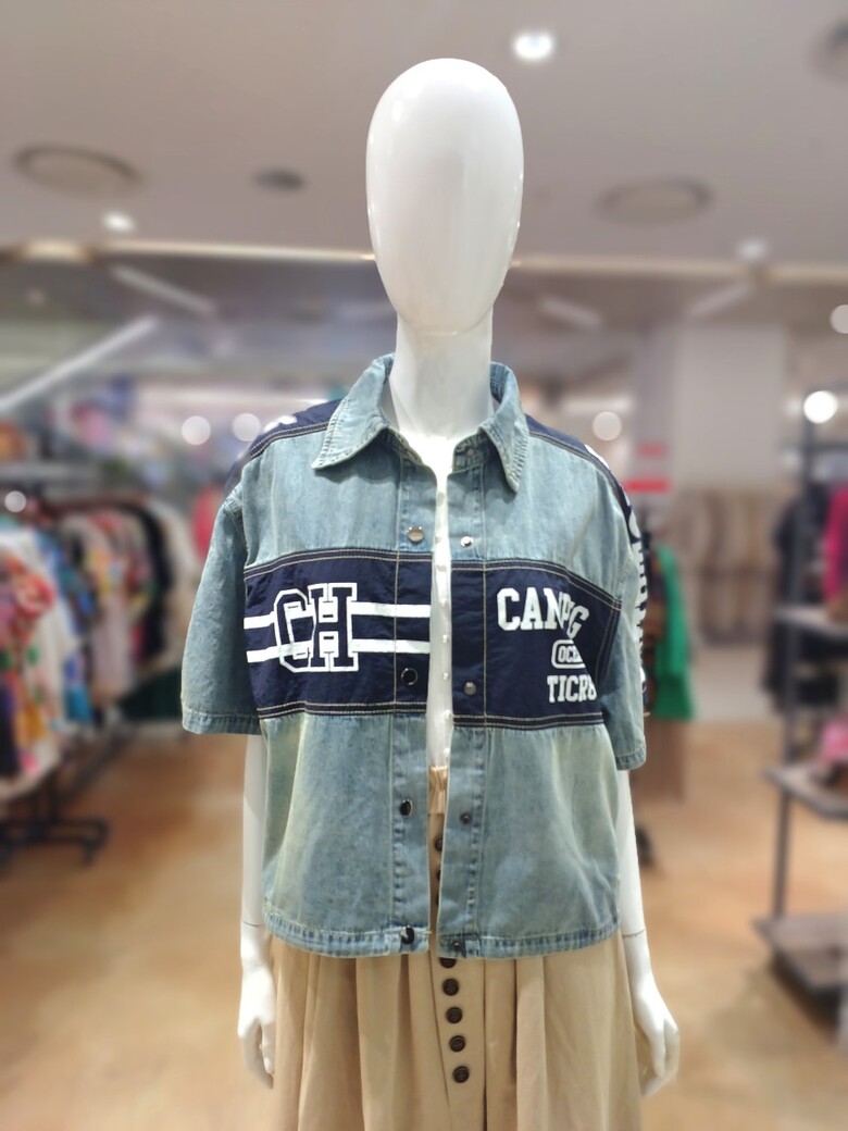 레터링 배색 청 우븐 자켓입니다