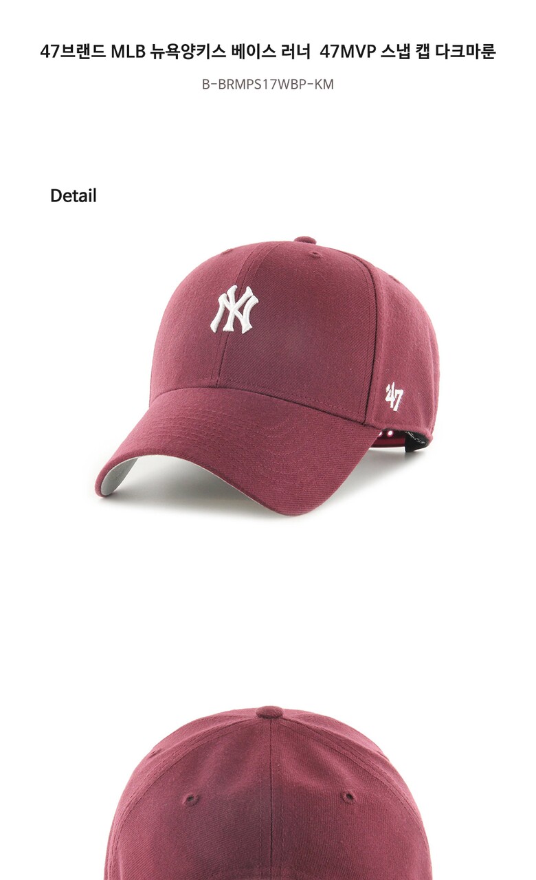 47브랜드 MLB 뉴욕양키스 베이스 러너 47MVP 스냅 캡 다크마룬 B-BRMPS17WBP-KM