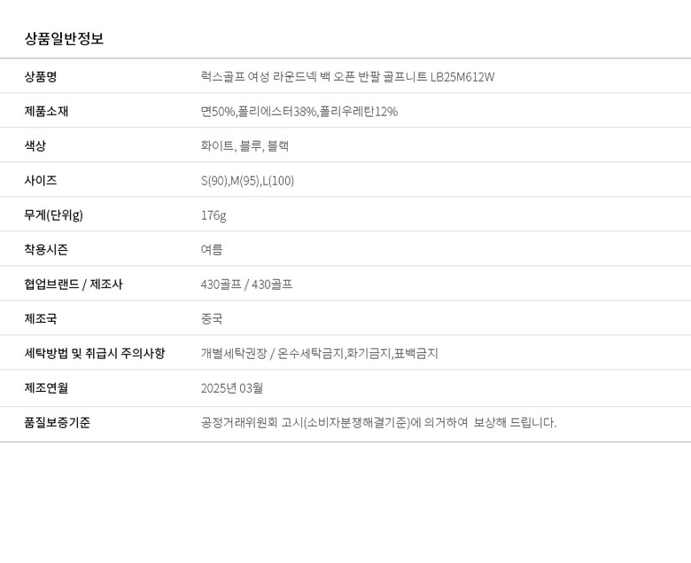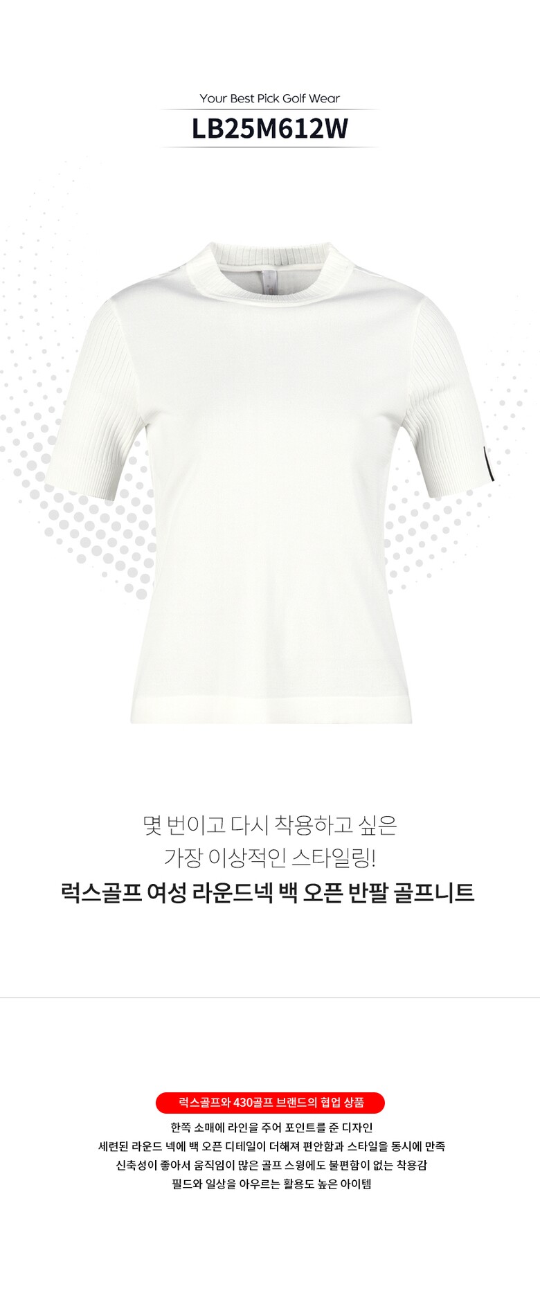 골피아 LB25M612W 여성 라운드넥 백 오픈 반팔 골프니트