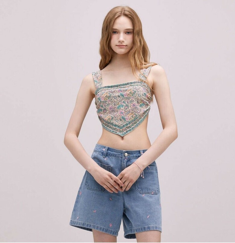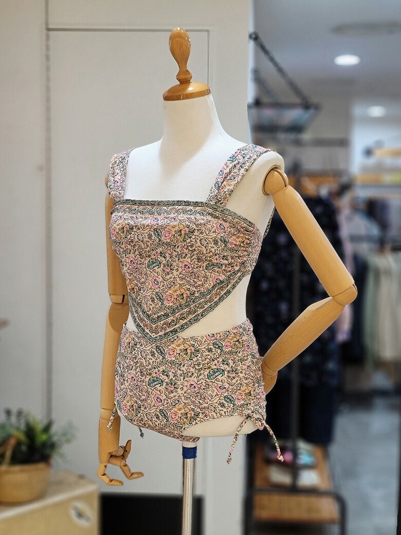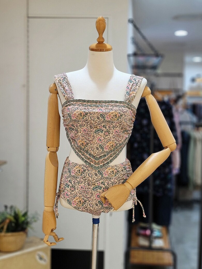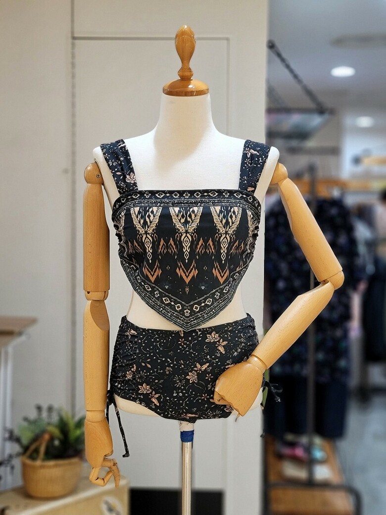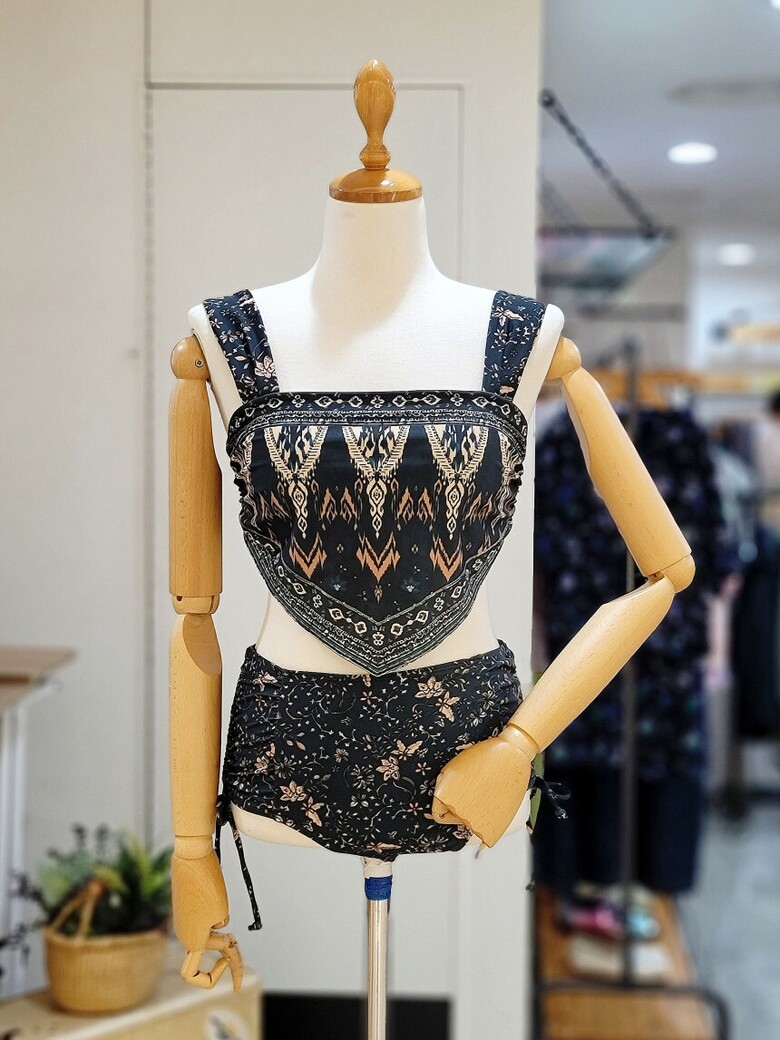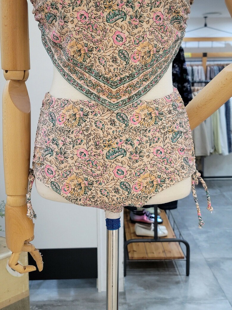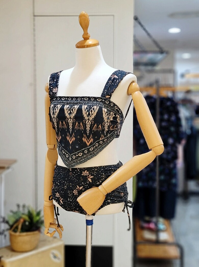 보더 프린팅으로 스카프형 디자인의 비키니입니다.