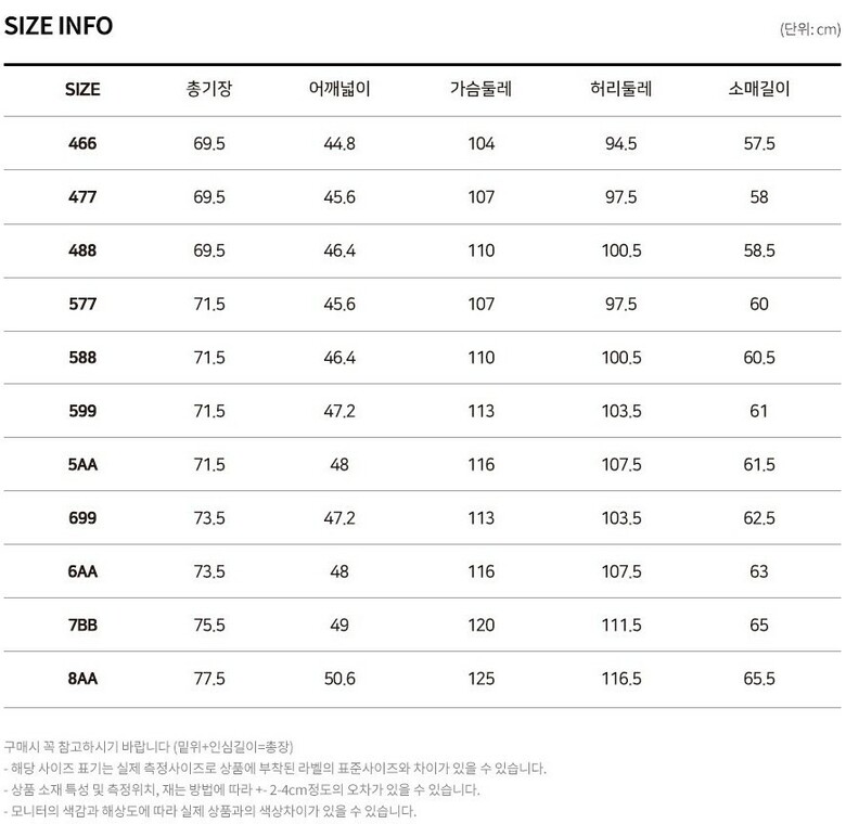 | 6. 세탁방법 및 취급시 주의사항 | 케어라벨참조 |