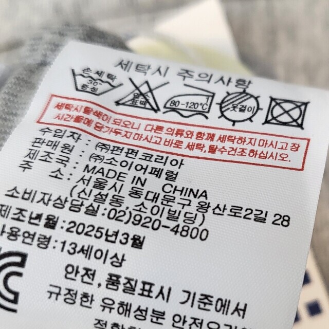 | 1. 제품 소재 (섬유의 조성 또는 혼용률을 백분율로 표시, 기능성인 경우 성적서 또는 허가서) | 상품상세참조 |