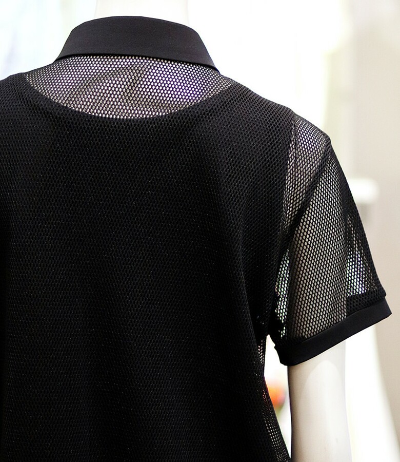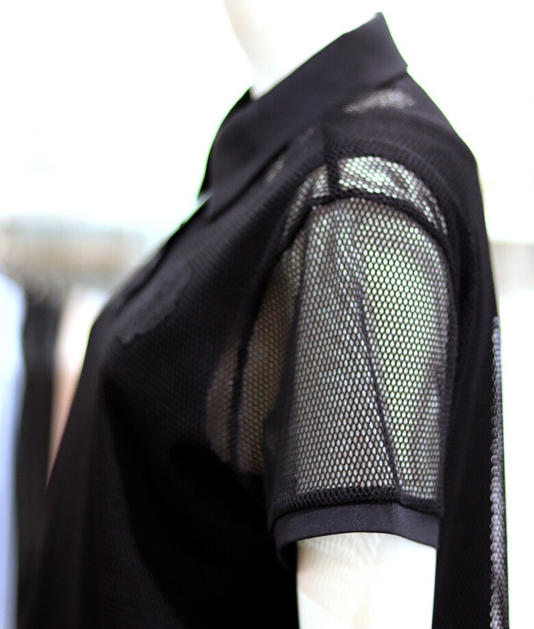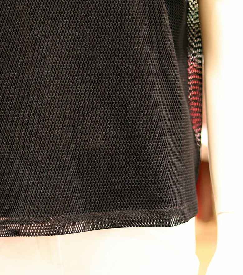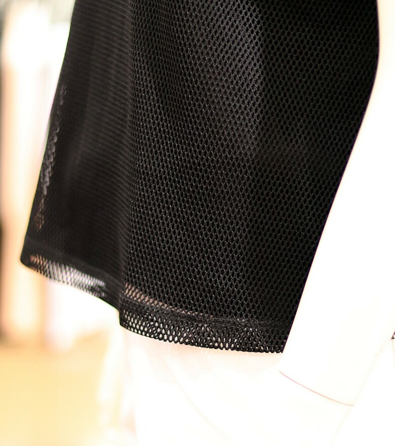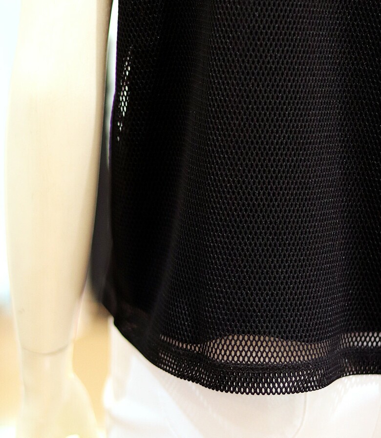 전체 메쉬 소재의 티셔츠안에 슬리브리스를 덧댄
