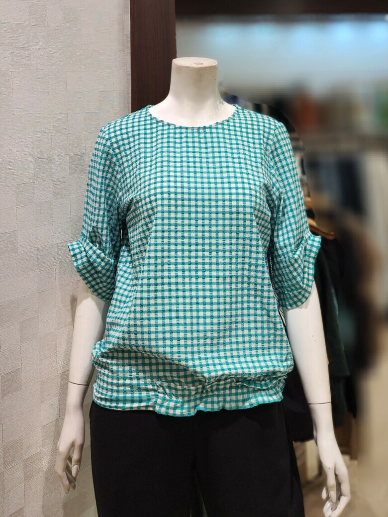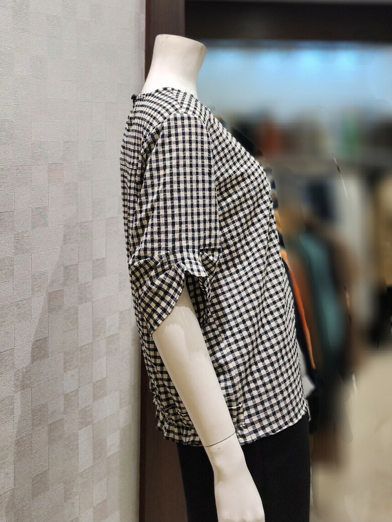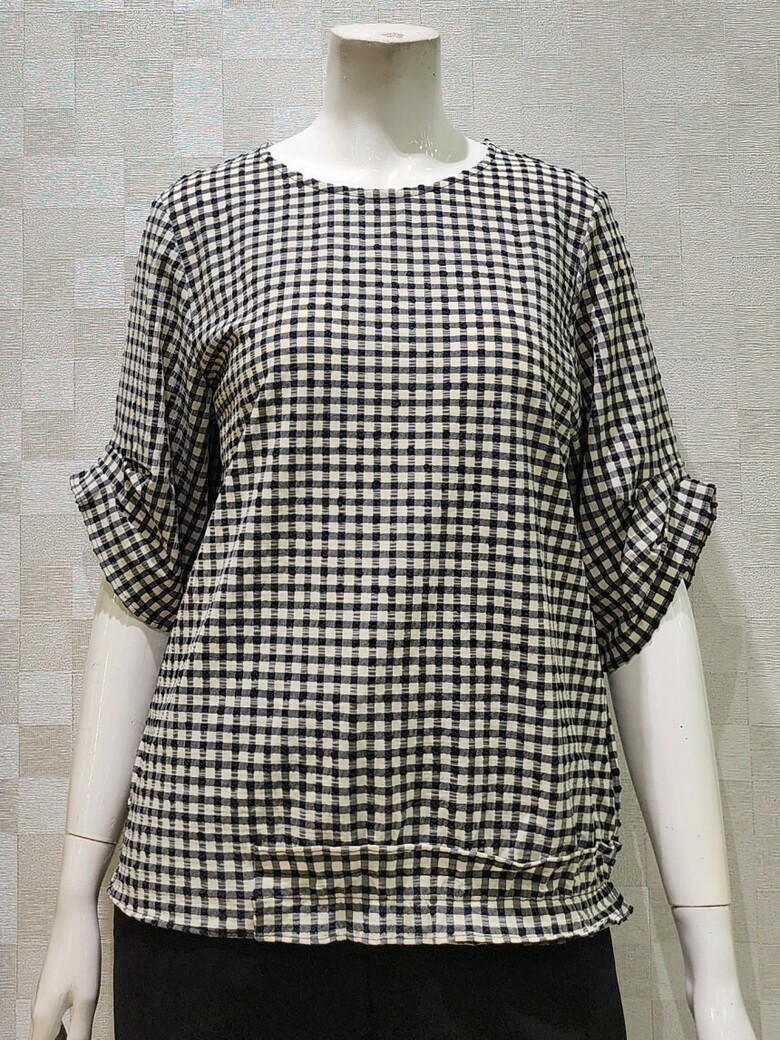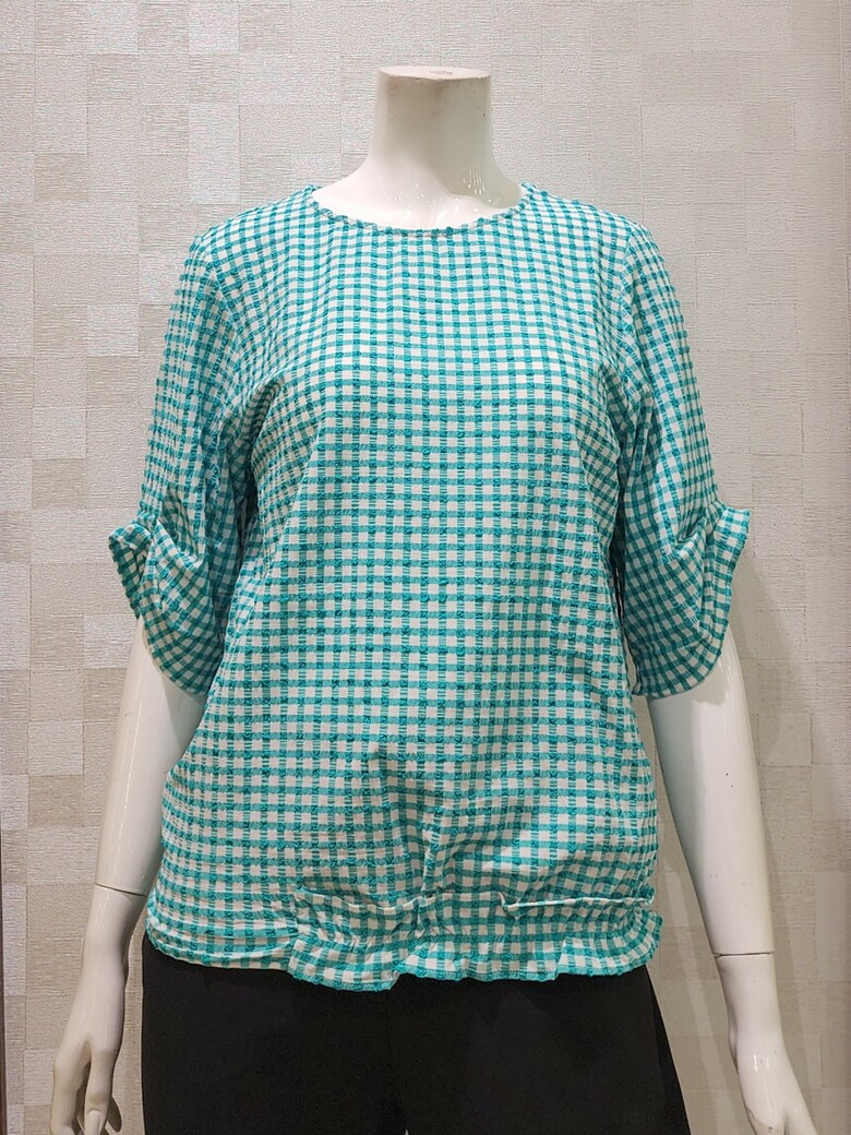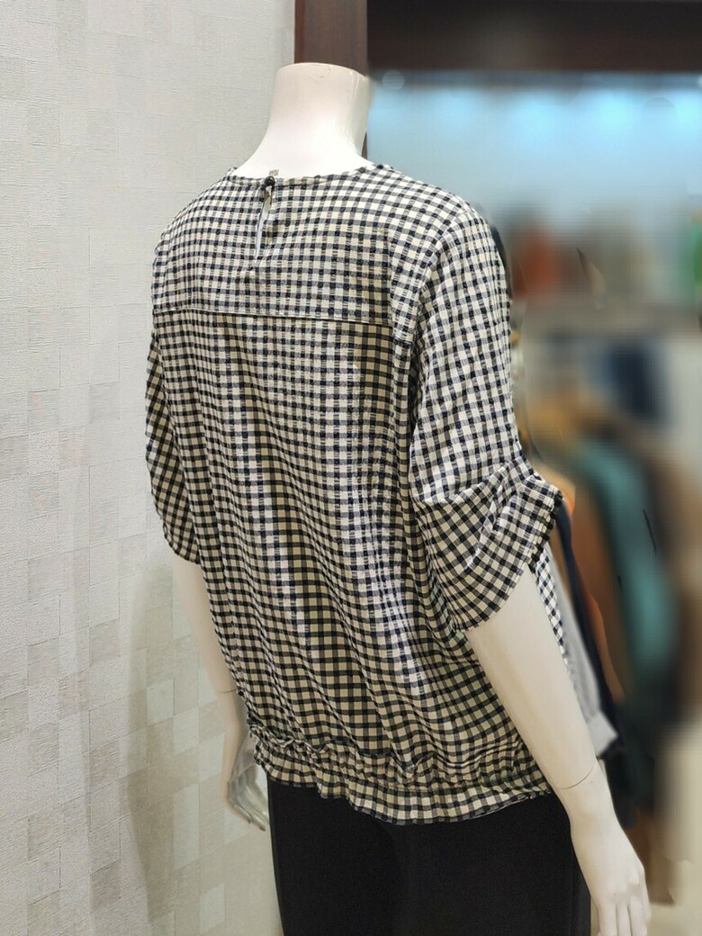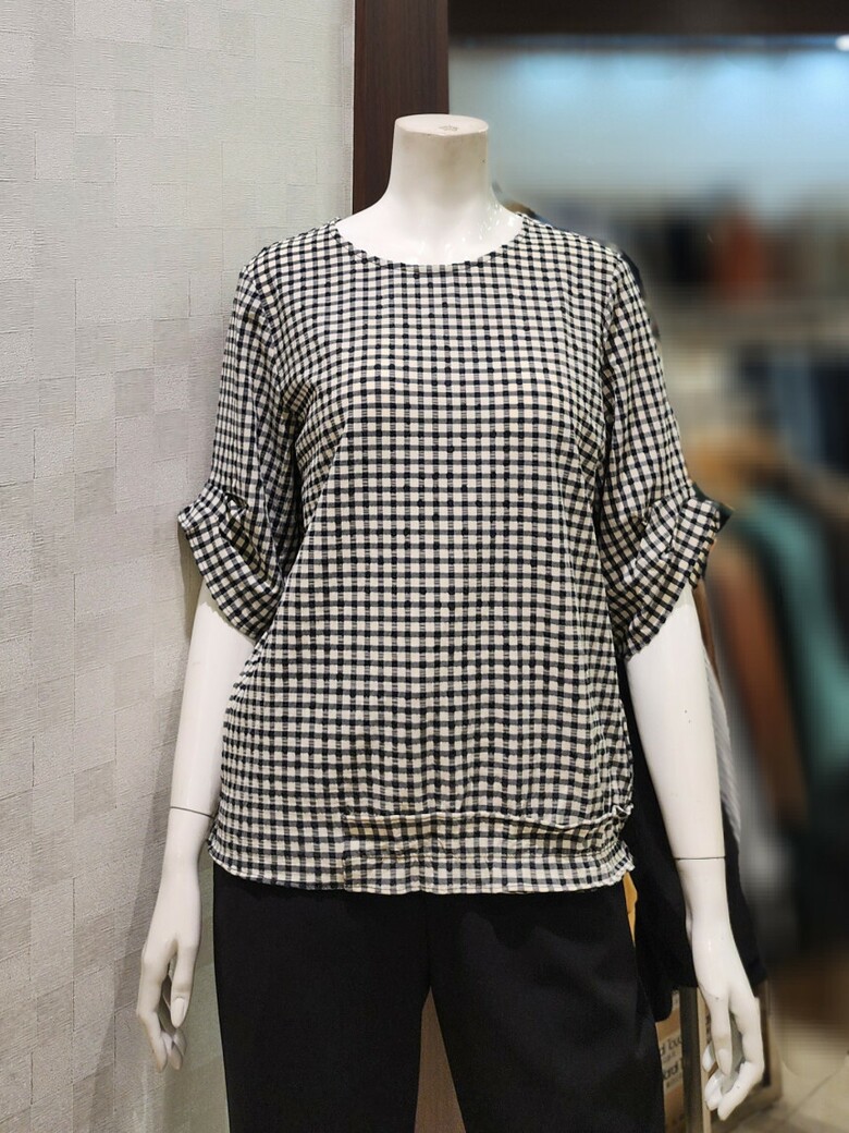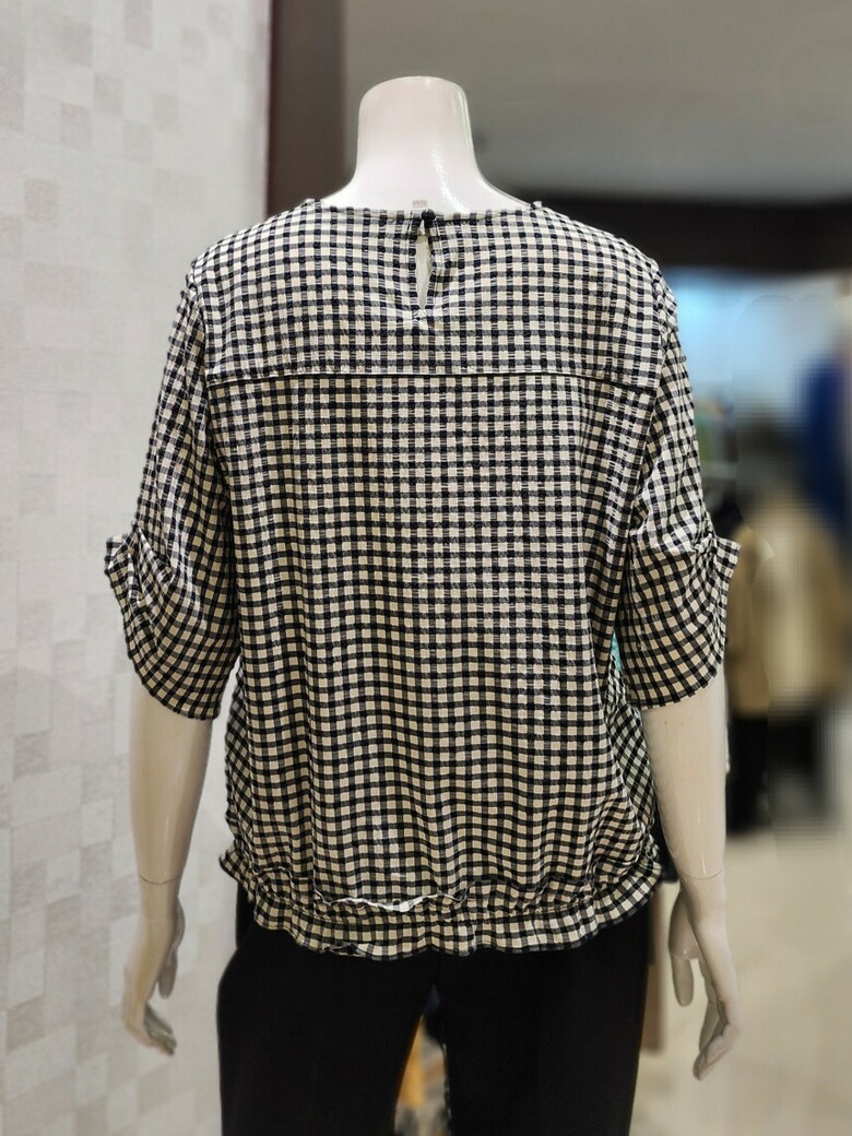[벨라디터치] V3F2BL26 체크 스판 블라우스