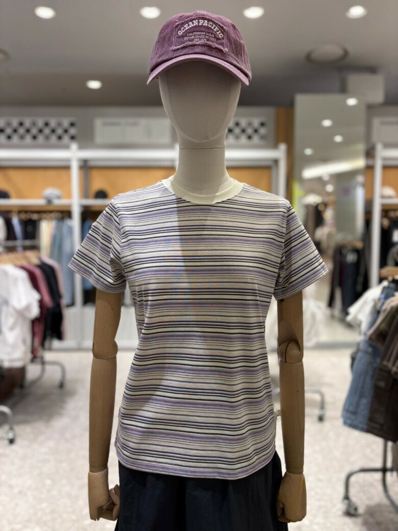 꼬모니노즈 W SLIM MULTI STRIPE T-SHIRT