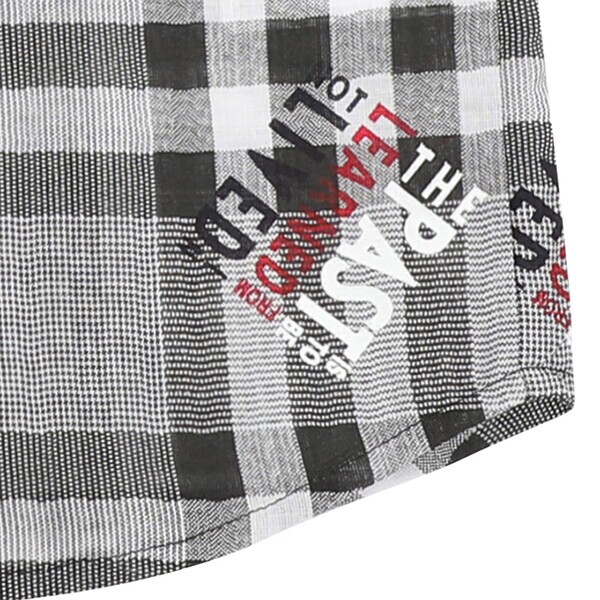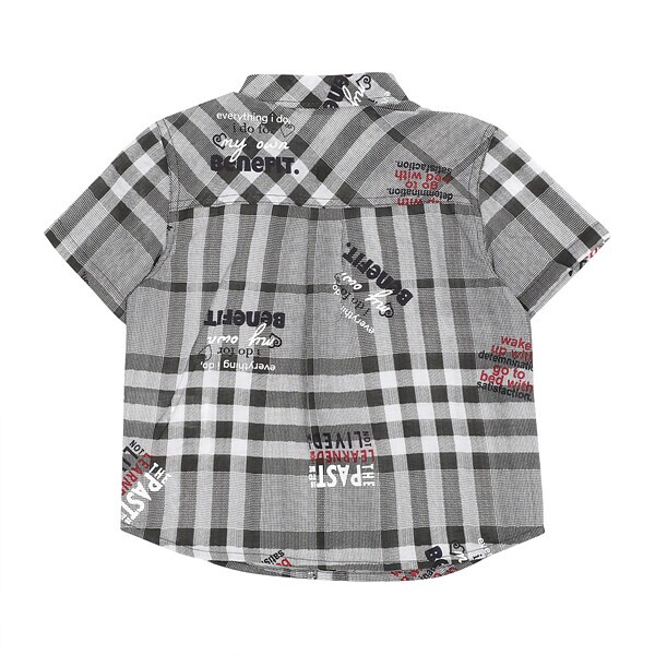- 기본셔츠 스타일로 체크패턴에 전판레터링으로 포인트를 준 체크셔츠입니다