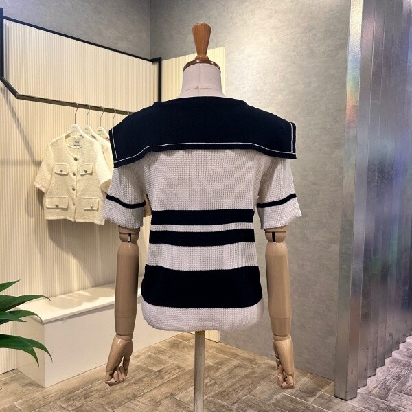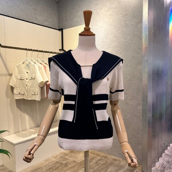 2025년 s/s 신상?세일러 카라 배색 니트 입니다.