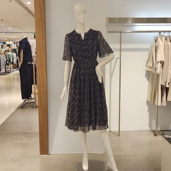 가벼운 프린트 쉬폰 소재감의 반팔 롱원피스입니다.