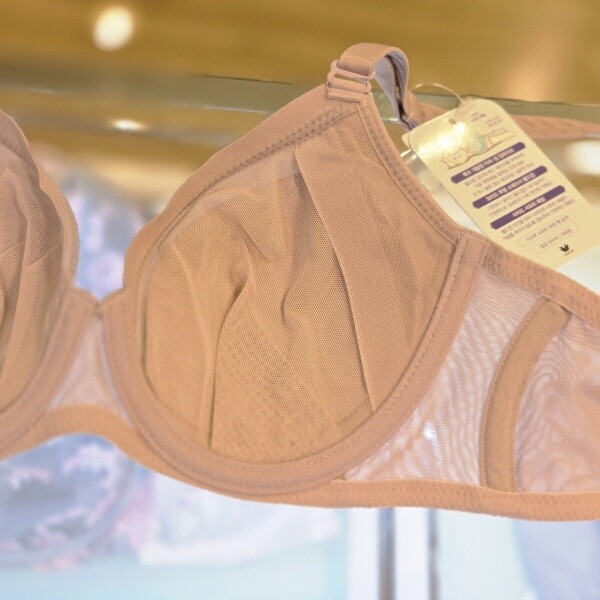 한겹의 얇고 투명한 스페이서를 몰딩 처리한 브라컵을 사용하여?흡한속건?및?형태 안정성을 준 브라로 더 넓어진 투명 스페이서 몰드 컵을 사용하고 특수 개발된 커버-업 접테이프를 컵 상변에 부착하여 뜨거나 눌림없는 매끈한 실루엣을?완성해 주는 제품