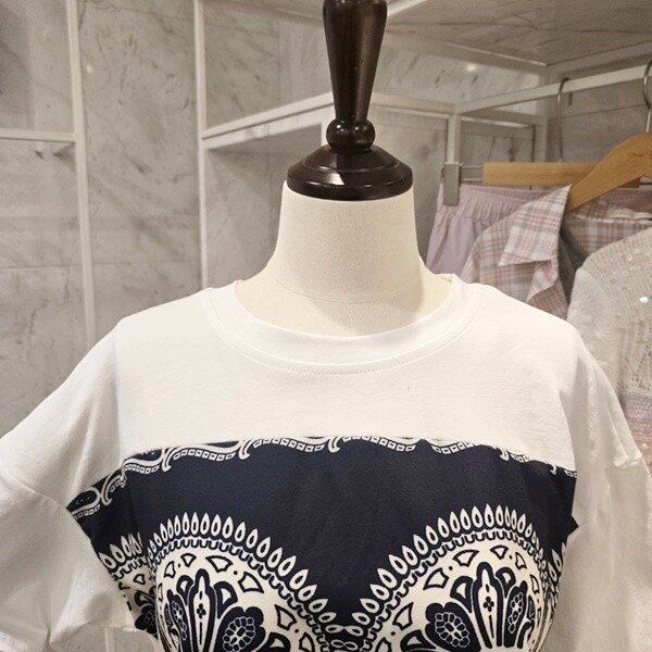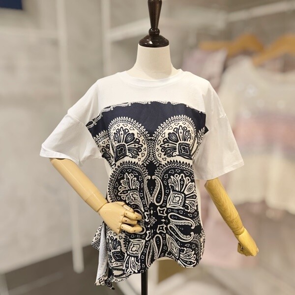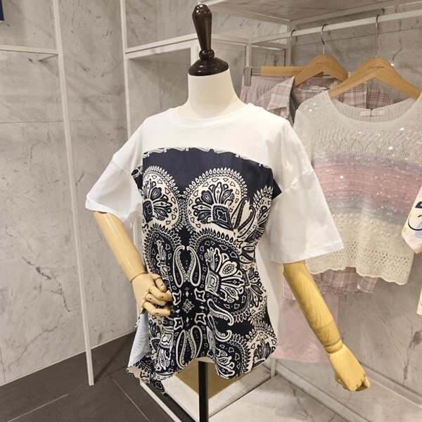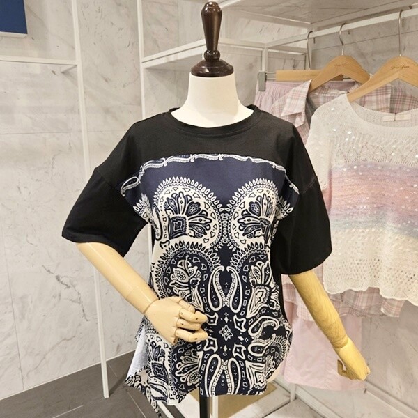 F5BTS505A_프린트 배색 반팔 티셔츠