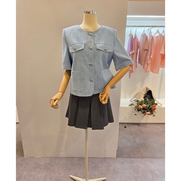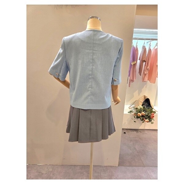 치수 : FREE /어깨너비 39cm 가슴단면 50cm 소매기장 28cm 총기장 51cm