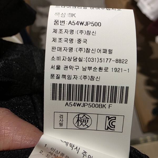 제조자 : (주)참신어패럴