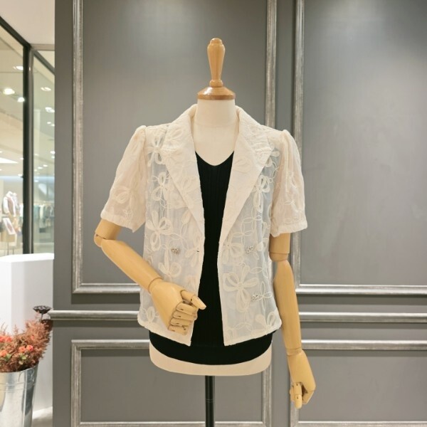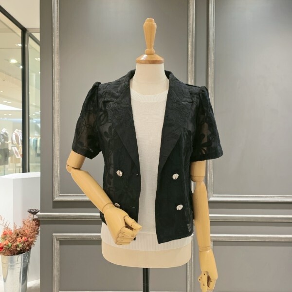 25년 S/S 신상품?반팔 퍼프소매 디자인의?자수패턴 더블자켓입니다