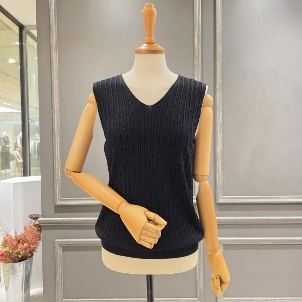 이너로 매치하시기 좋은 브이넥 민소매 니트입니다