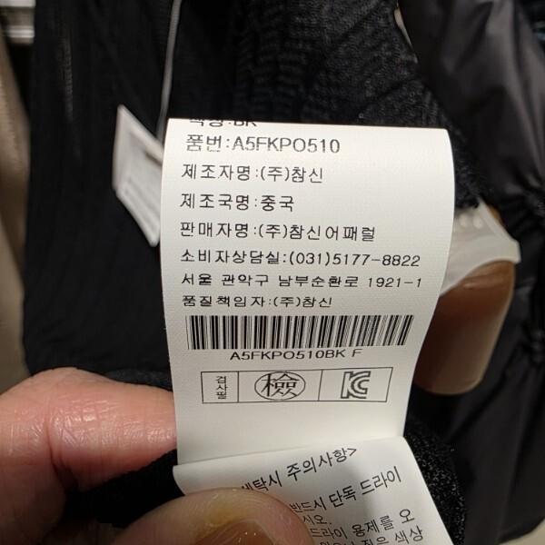 제조자 : (주)참신어패럴