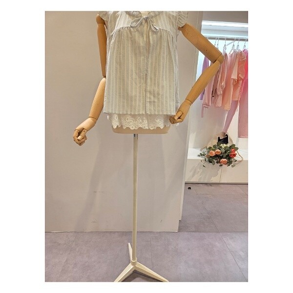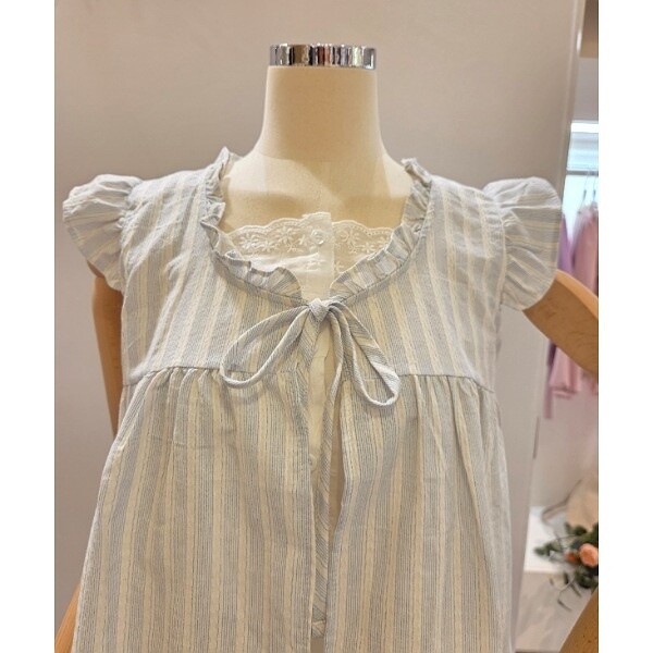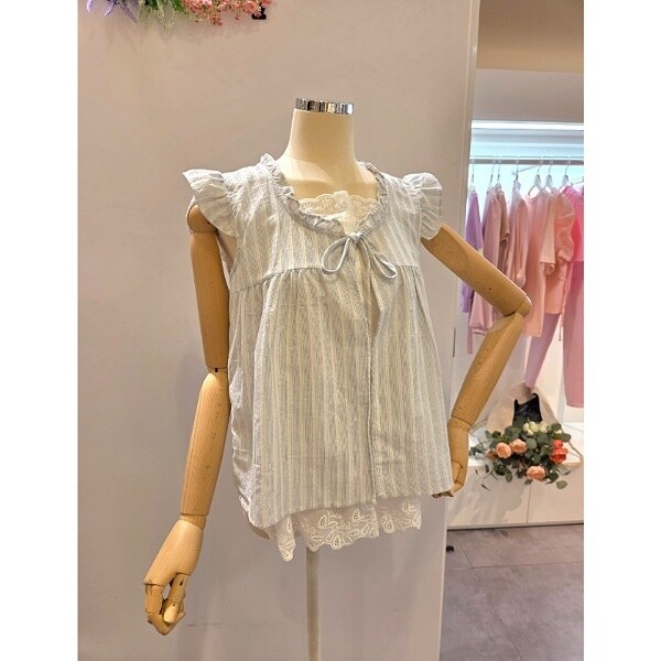 CP5WBL02_스트라이프 패턴 프릴 민소매 블라우스