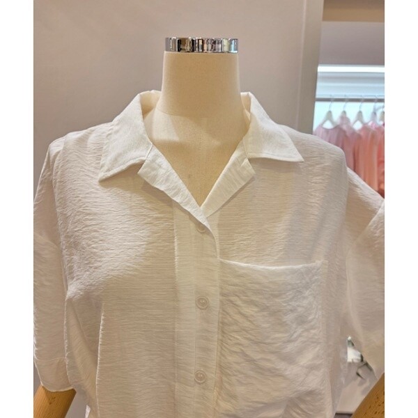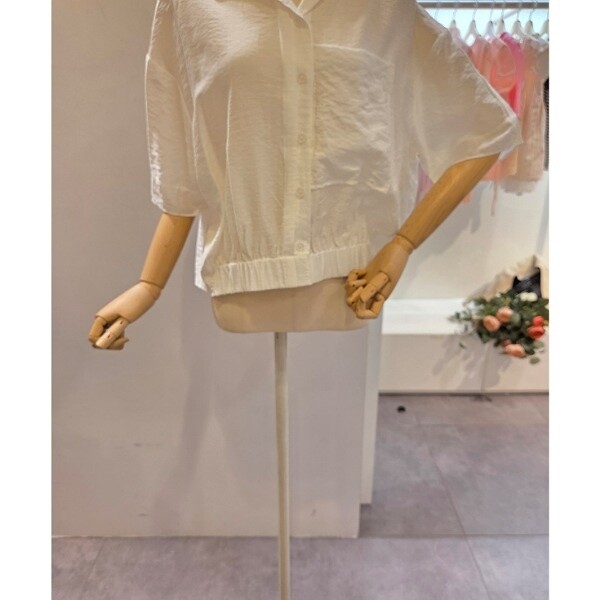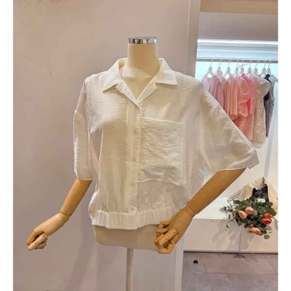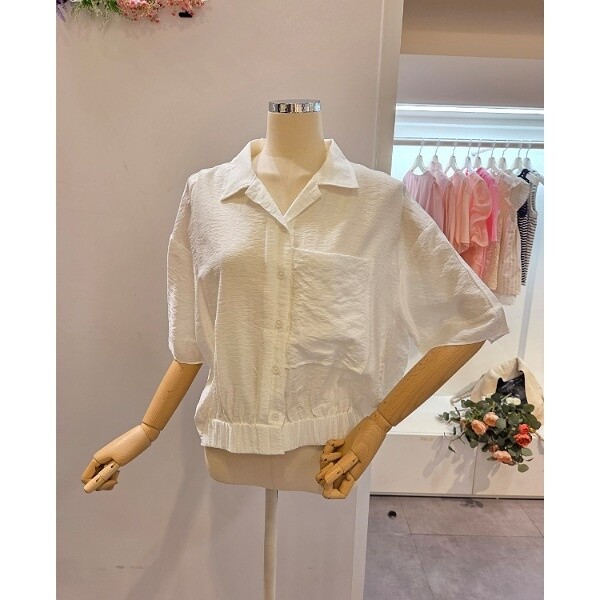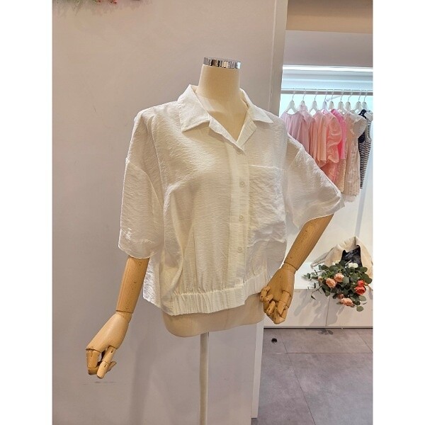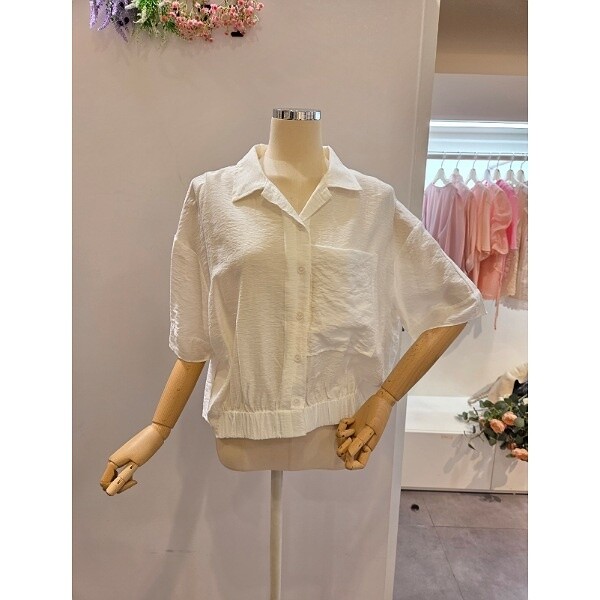 CP5WBL18_밑단 밴딩 카라 블라우스