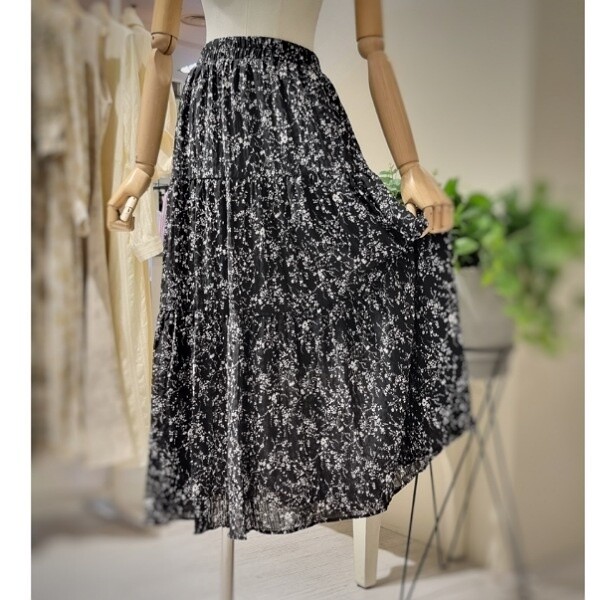 RPMASK05_흑백 잔꽃 링클스커트
