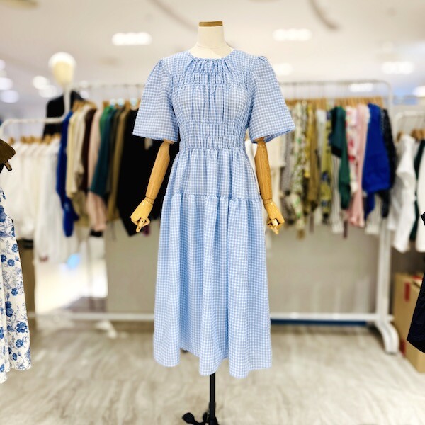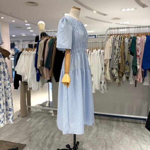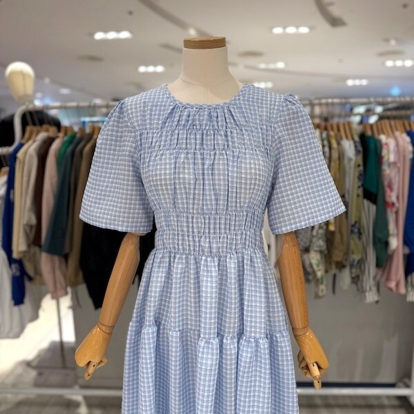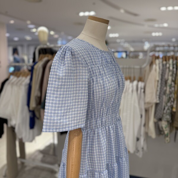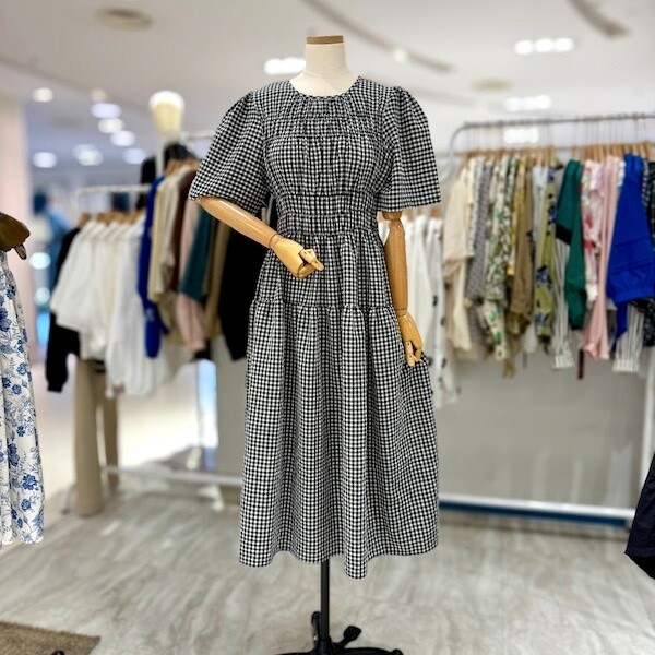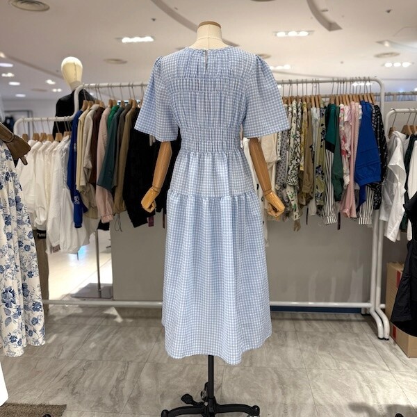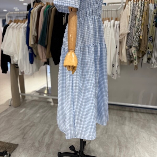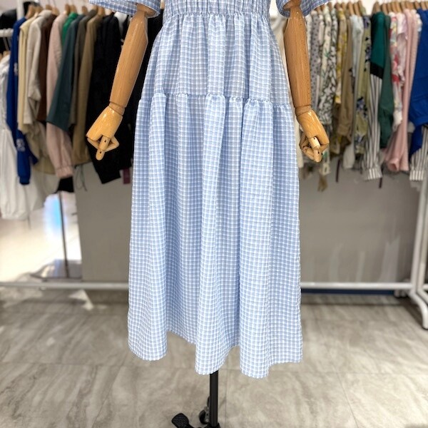 A25SO5223_체크 스모크 밴딩 원피스
