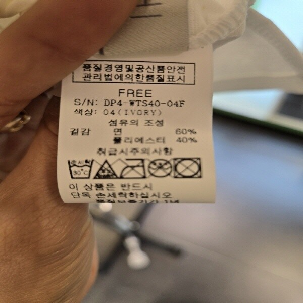 | 1. 제품 소재 (섬유의 조성 또는 혼용률을 백분율로 표시, 기능성인 경우 성적서 또는 허가서) | 면60%,폴리에스터40% |