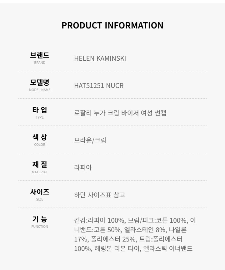헬렌카민스키 HAT51251 NUCR 로잘리 누가 크림 바이저 썬캡