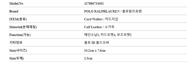 폴로랄프로렌 427886734001 포니 ID 폴드 카드지갑