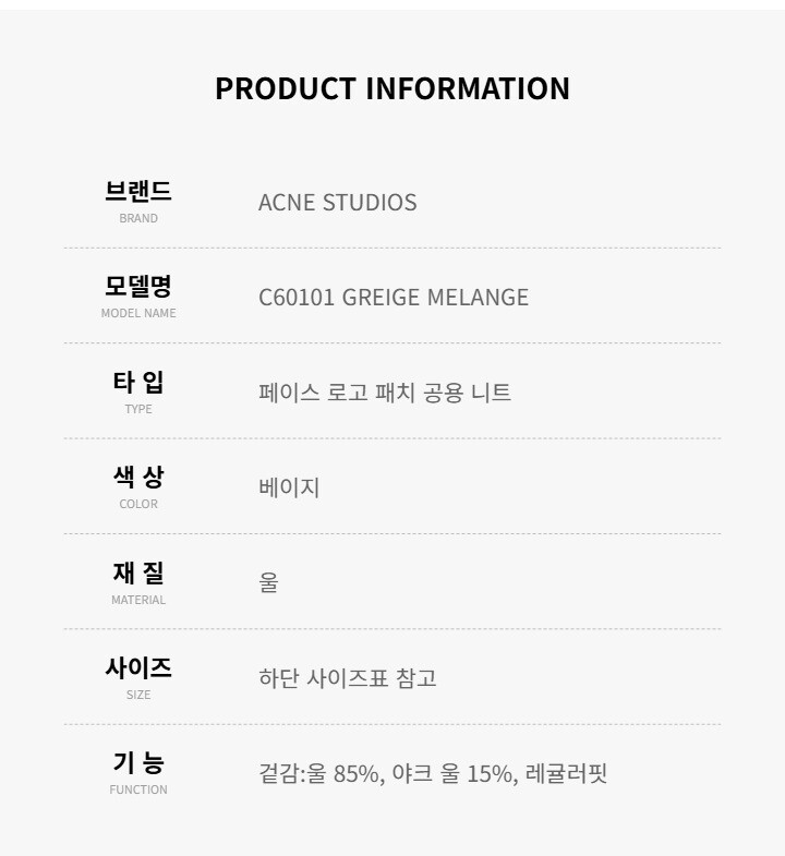 아크네스튜디오 C60101 GREIGE MELANGE (DRN) 페이스 로고 패치 공용 니트