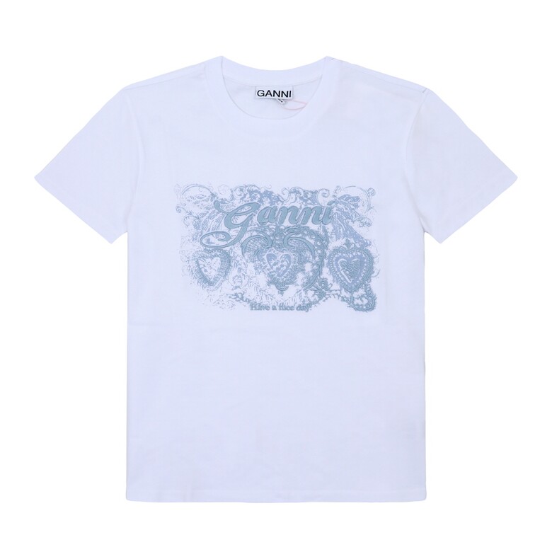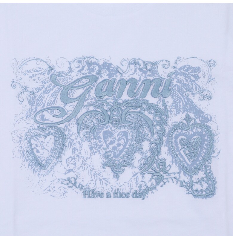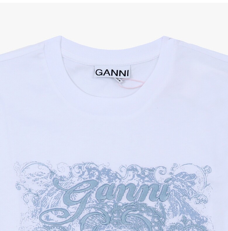 GANNI T4158 151 타투 레이스 로고 자수 여성 반팔티