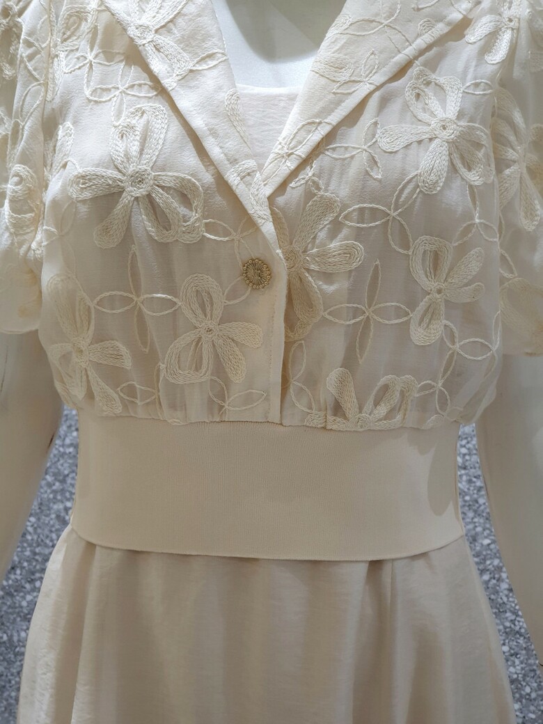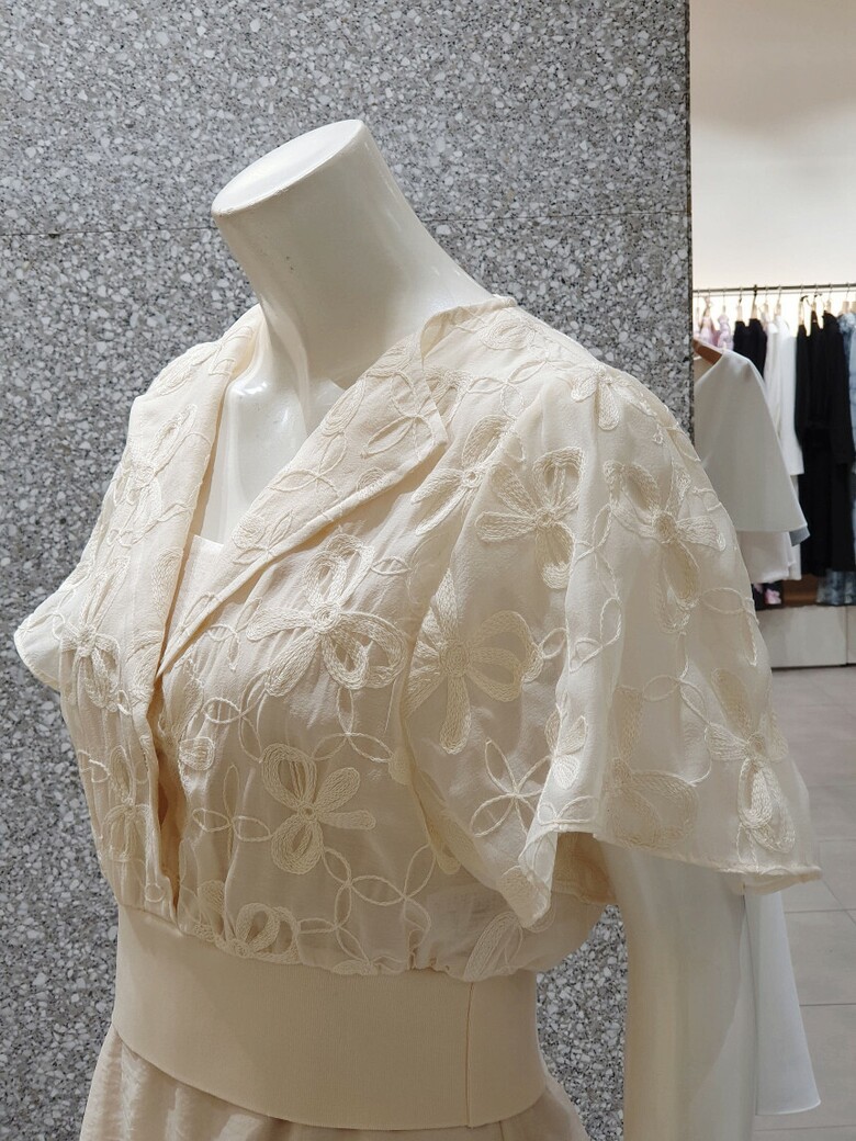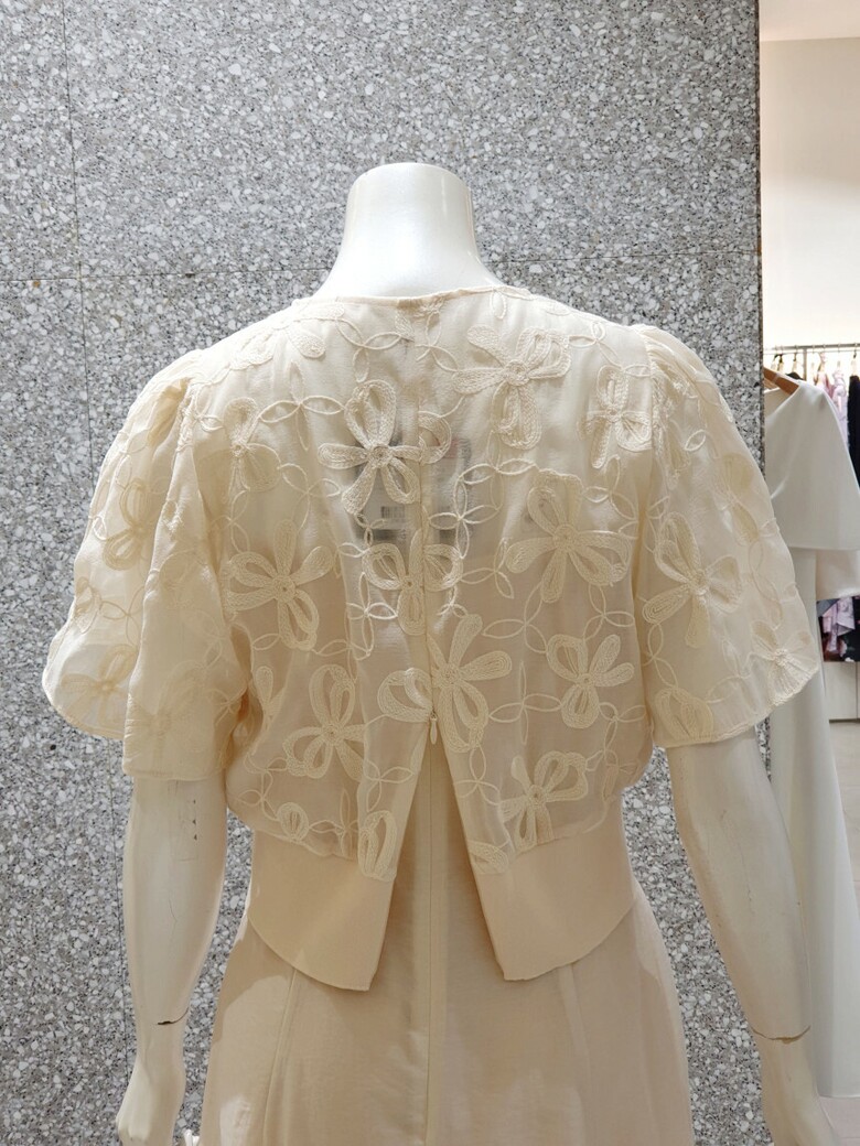 플로럴 모티브의 자수로 포인트를 준