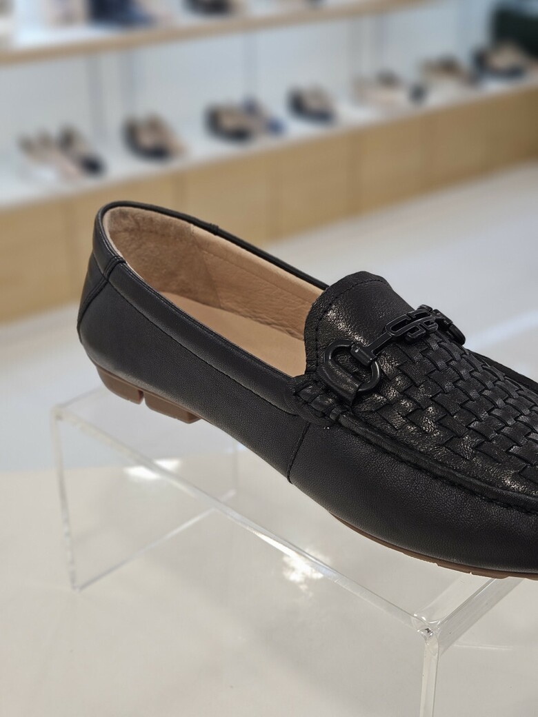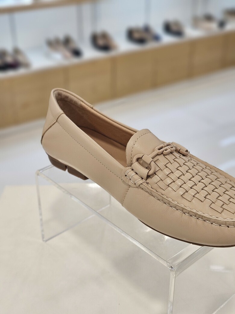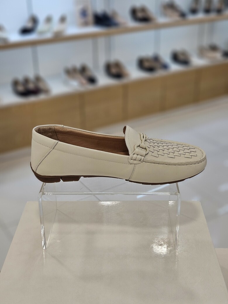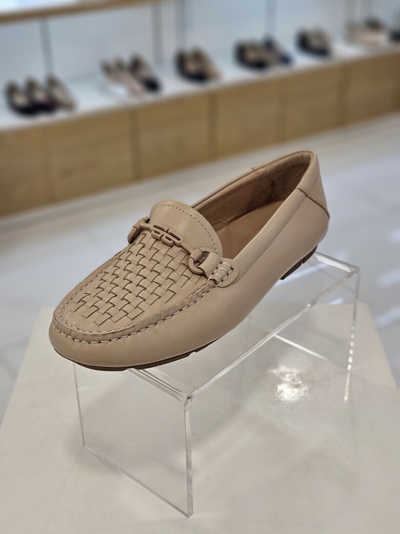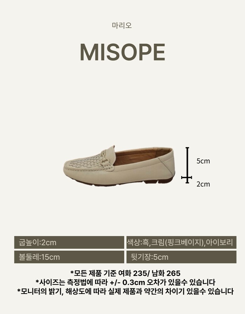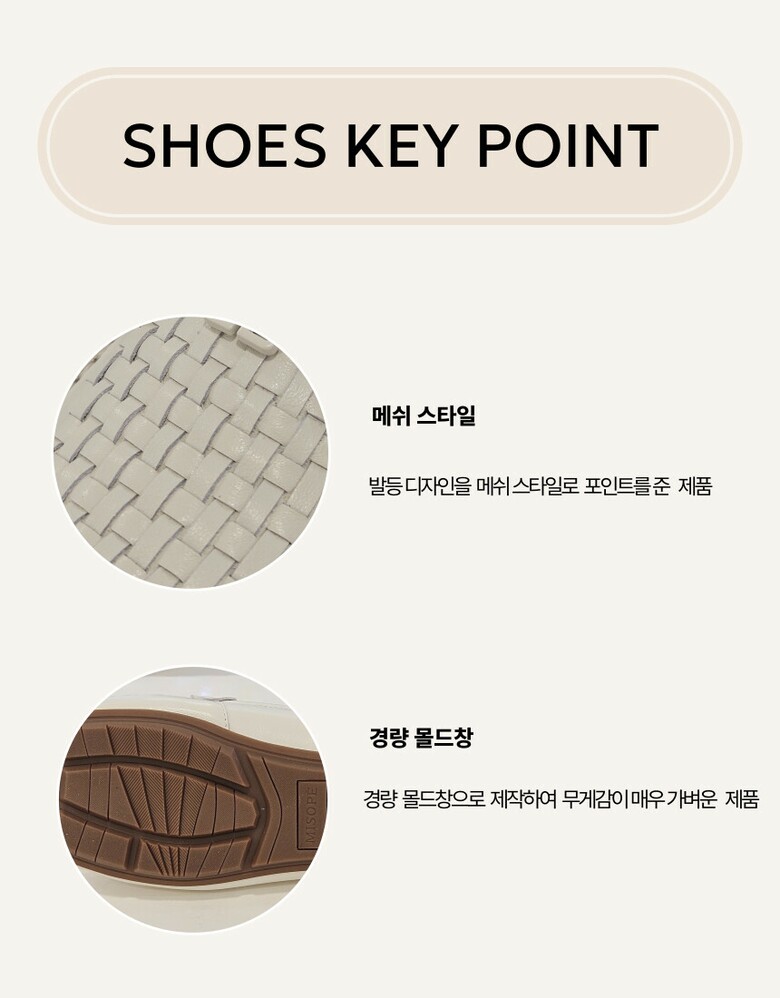 외피와 칼라를 맞춘 심플한 장식과 수작업의 메쉬디자인으로 고급스러운 여성 로퍼