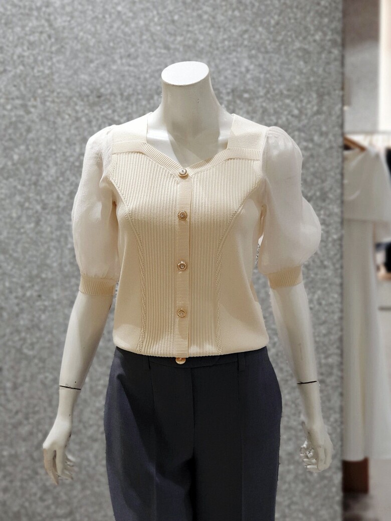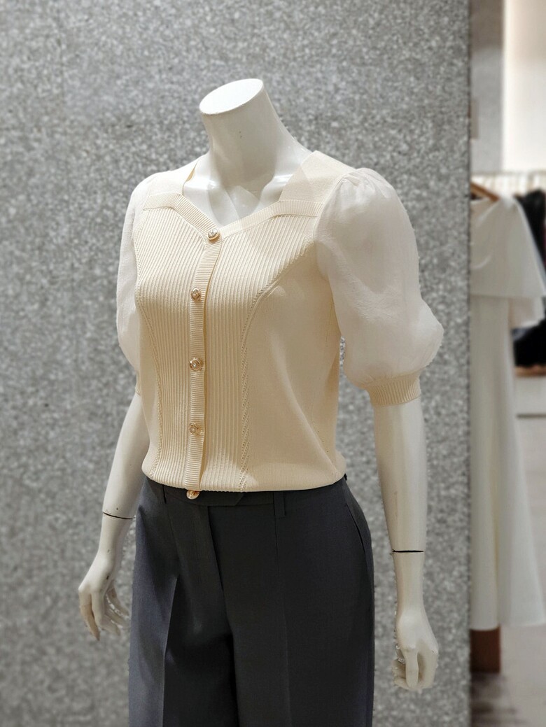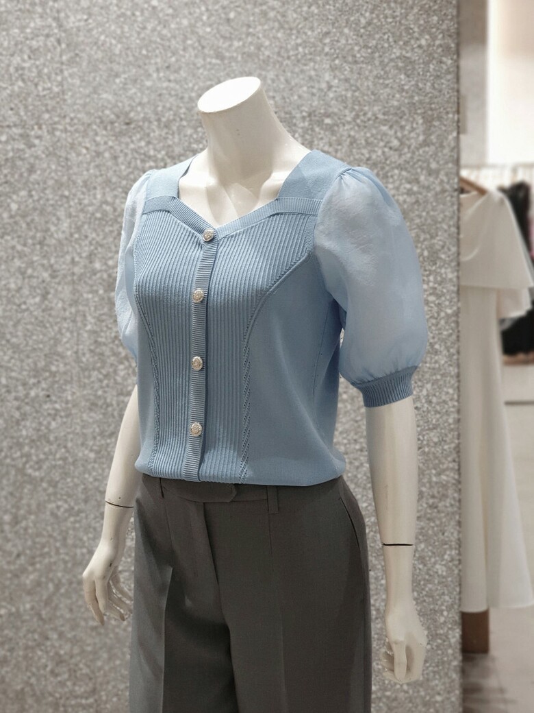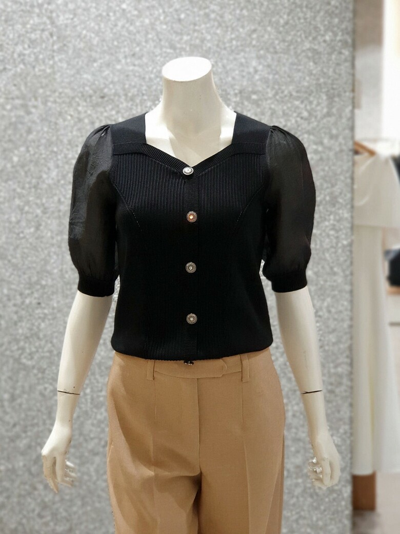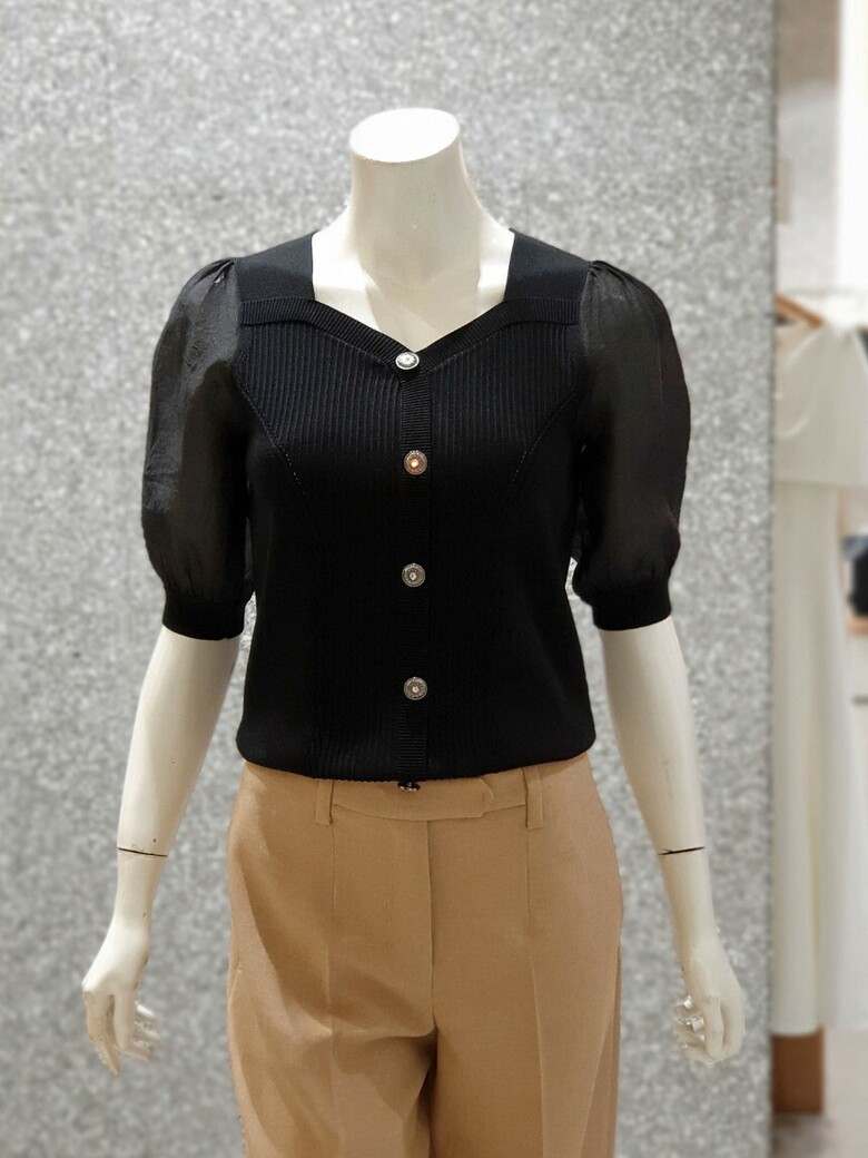 _판매종료시스루 슬리브 브이넥 풀오버 니트 JR6-A1-PO753