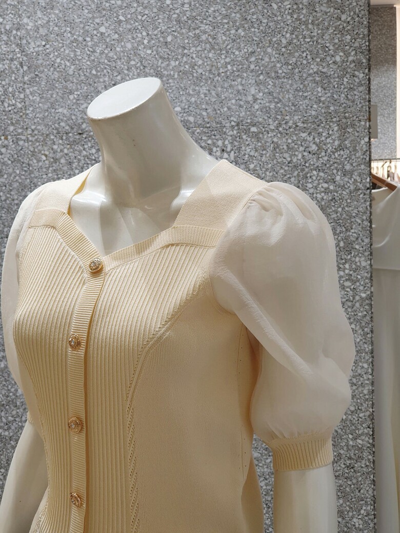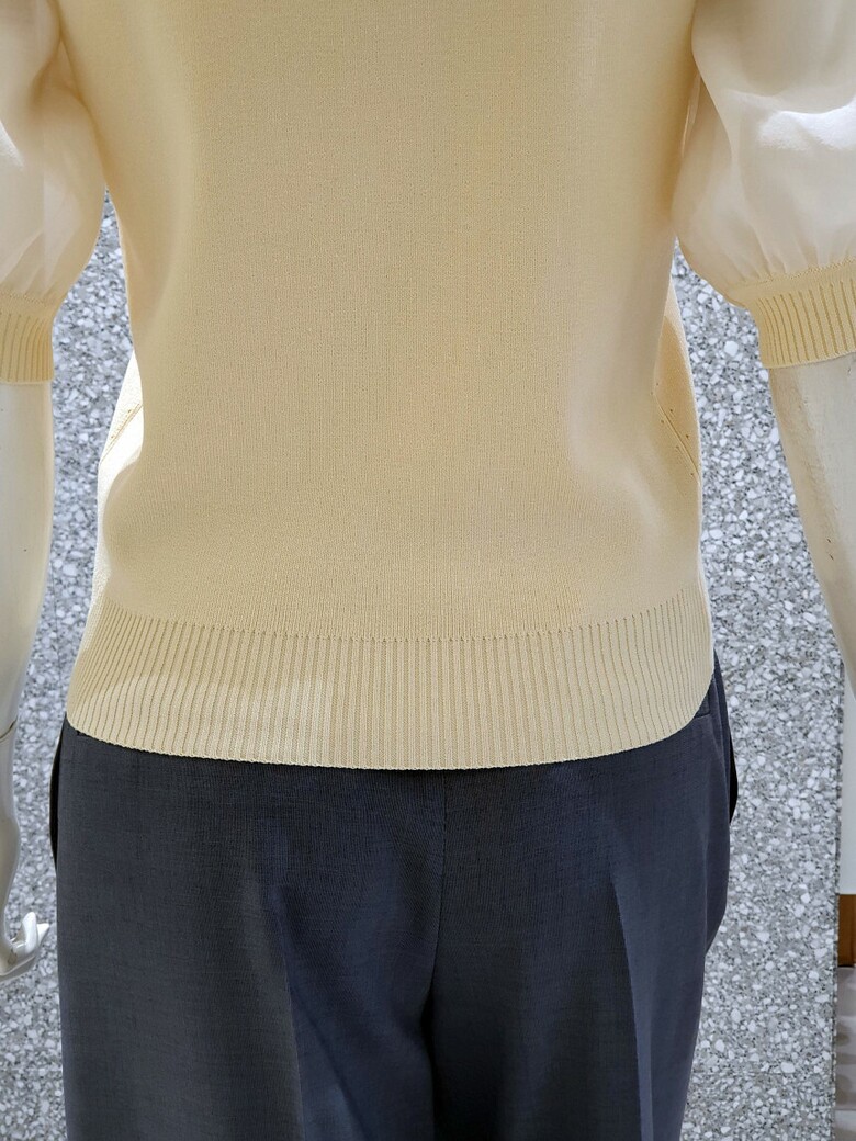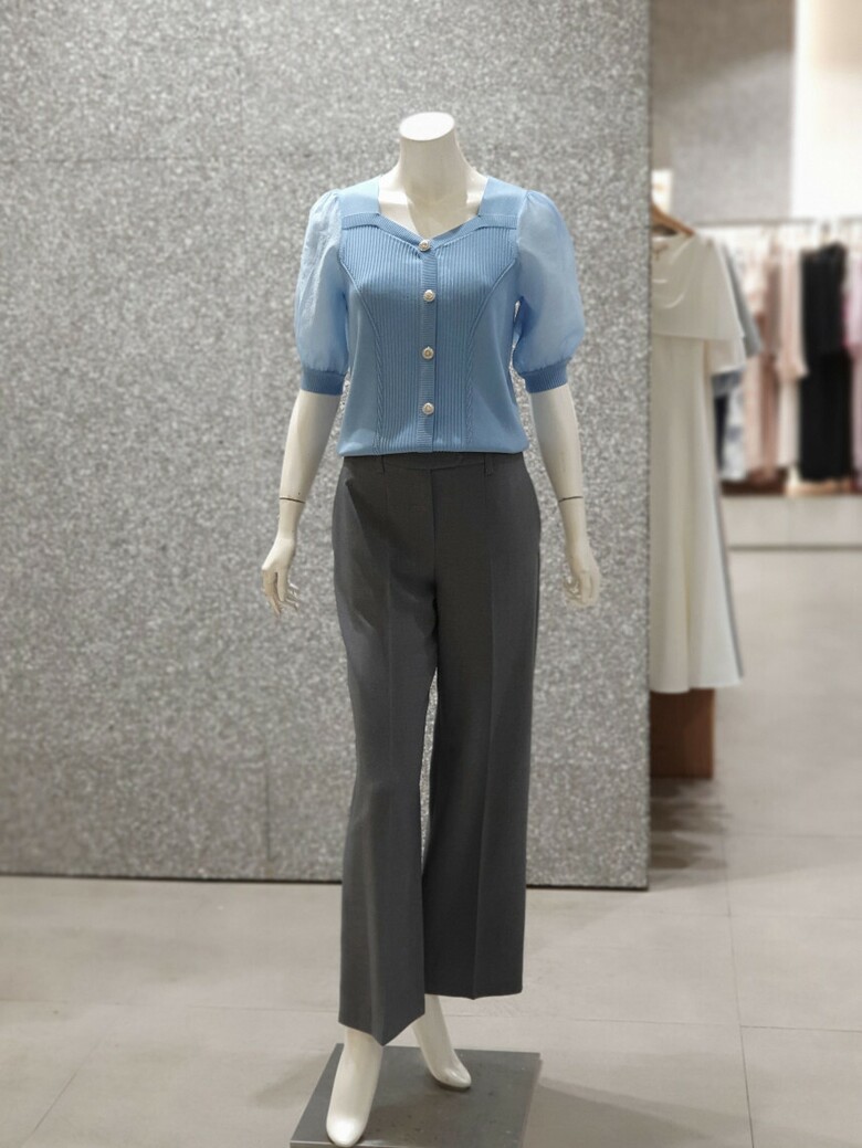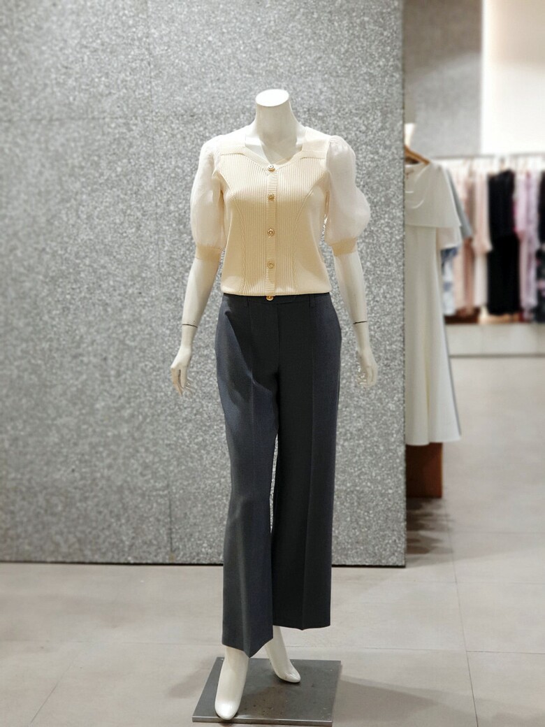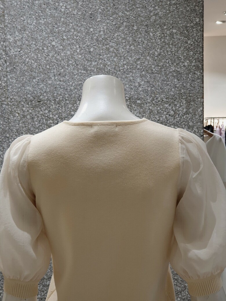 시스루 슬리브 배색으로 포인트를 준 풀오버 니트입니다.